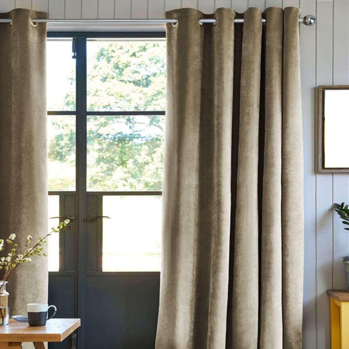 Un très beau rideau en velours de coton, avec des œillets aux effets vieillis.Il ira parfaitement dans votre salon et votre chambre, il donnera une touche chaleureuse à votre intérieur.