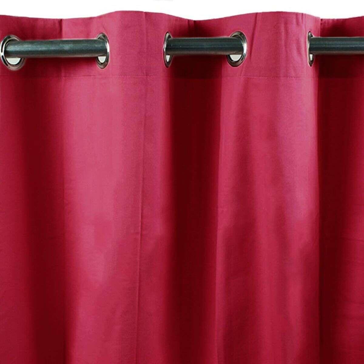 Un très beau rideau de couleur rouge de composition 100% coton épais avec une jolie tombé, parfait dans une décoration d'intérieur de Maison de famille (salon, chambre, salle à manger, bureau…).