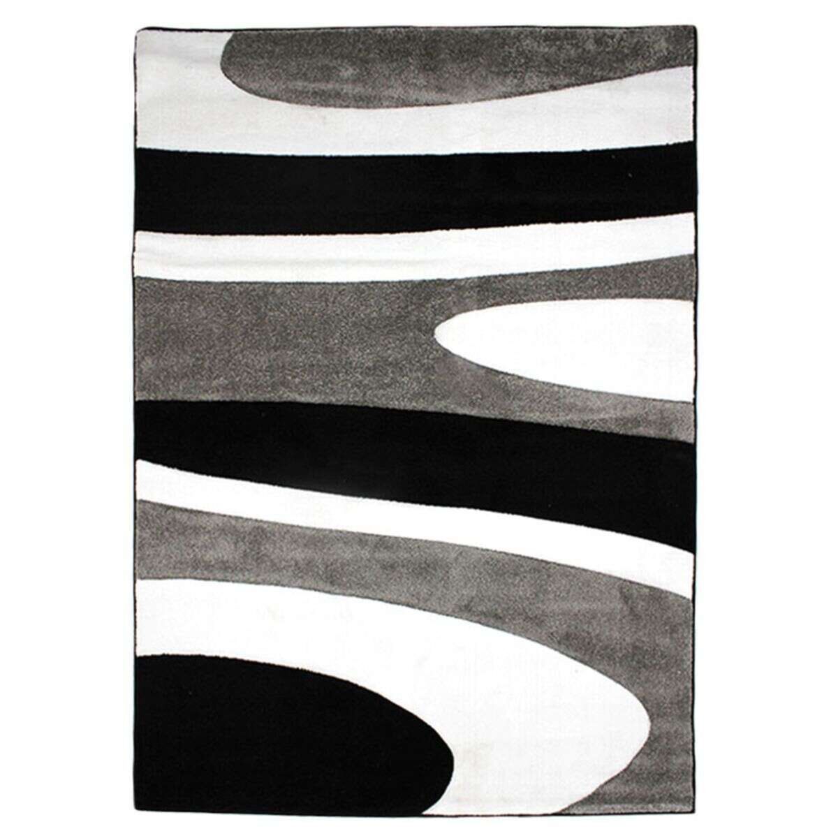 Tapis imprimé courbes abstraites gris et noir 120x170