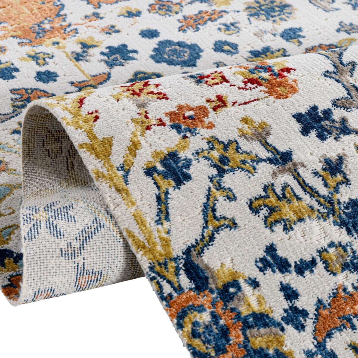 Tapis vintage oriental motif fleurs blanc multicolore 160x230