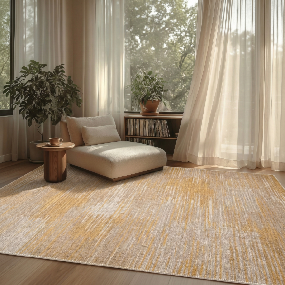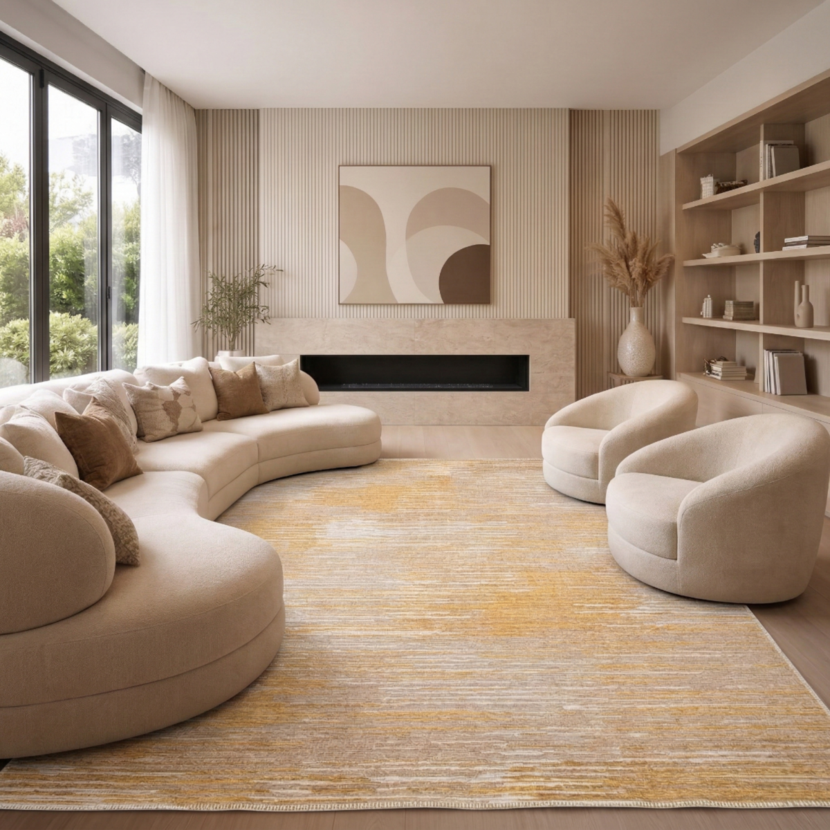 Apportez élégance et modernité à votre intérieur avec ce tapis au design inspiré des textures naturelles. Son motif linéaire aux nuances chaleureuses de beige, sable et ocre crée un subtil jeu de reliefs et de variations qui évoque les fibres naturelles et les matières minérales. Une pièce décorative raffinée qui s’intègre parfaitement dans un salon contemporain, une chambre ou un espace de vie lumineux.