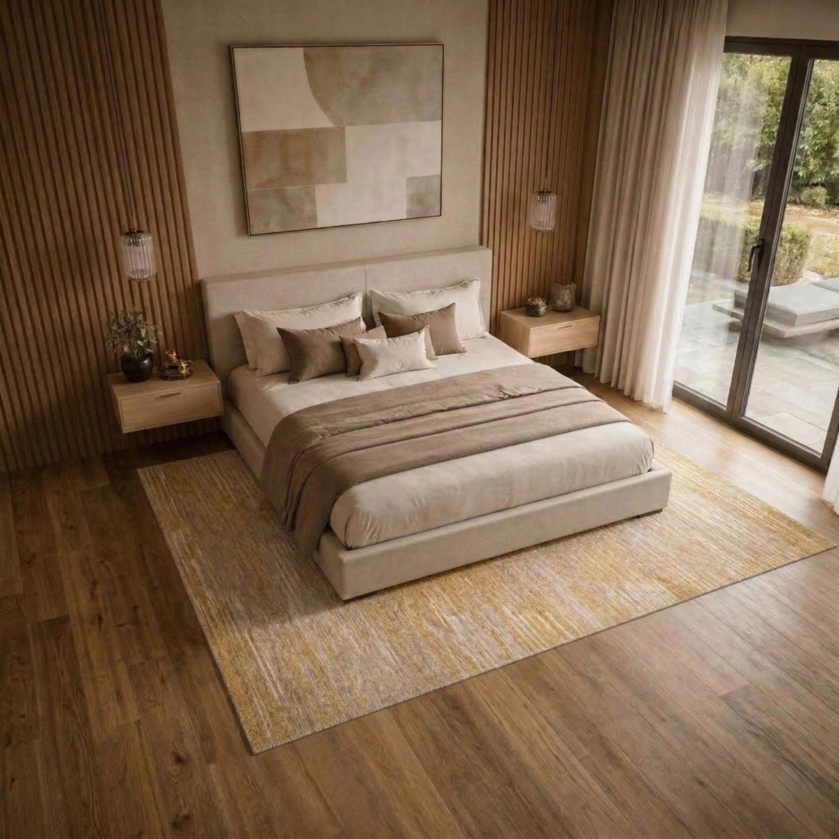 - Motif linéaire moderne aux nuances beige et ocre