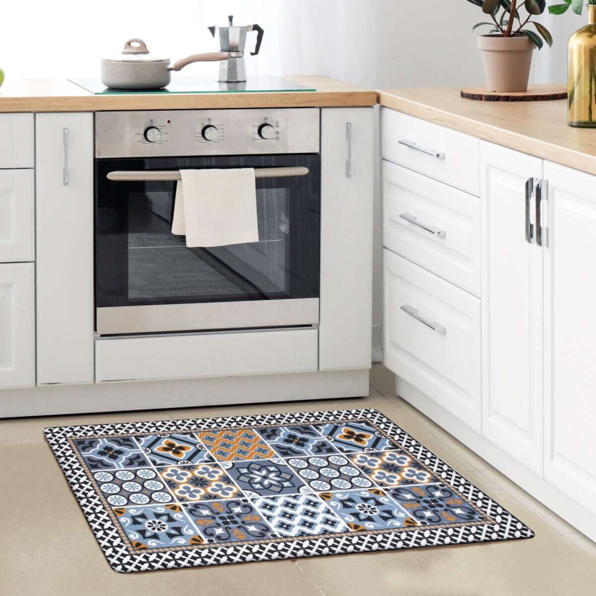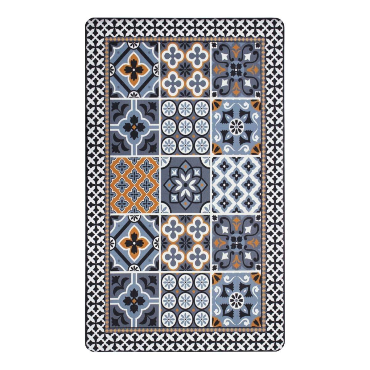 Tapis de cuisine carreaux de ciment bleu foncé 45x75