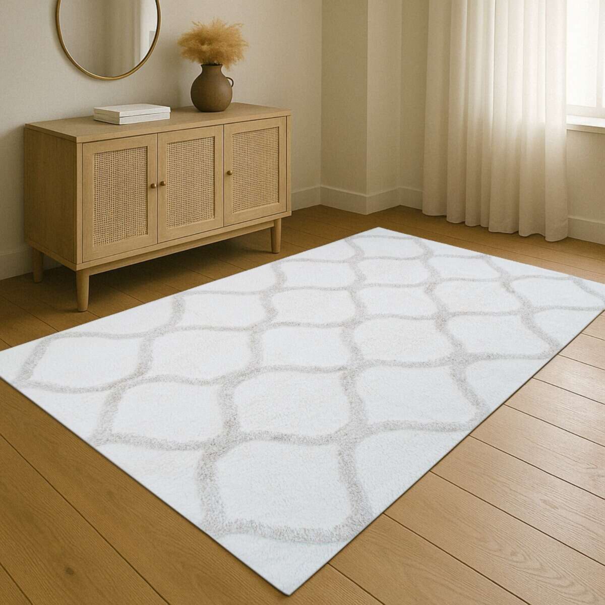 Apportez une touche bohème et lumineuse à votre intérieur avec ce superbe tapis berbère en coton lavable. Son motif coquillage délicatement dessiné et sa texture moelleuse de 20 mm d'épaisseur créent une ambiance douce, cosy et élégante — parfaite pour transformer un salon, une chambre ou même une entrée en véritable cocon apaisant.