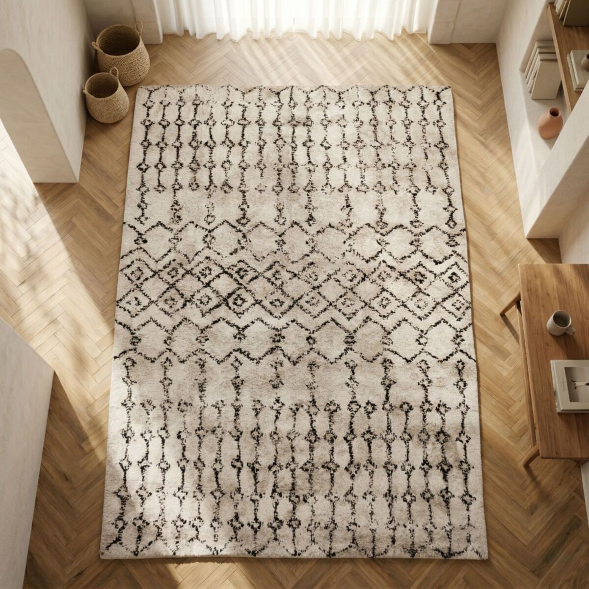 BERBERE TRIBAL est un superbe tapis fabriqué à 100% en coton recyclé. Avec sa couleur écru grisée et ses motifs berbères noirs, ce tapis ira à merveille dans un intérieur au style ethnique apportant une touche chaleureuse et intemporelle.