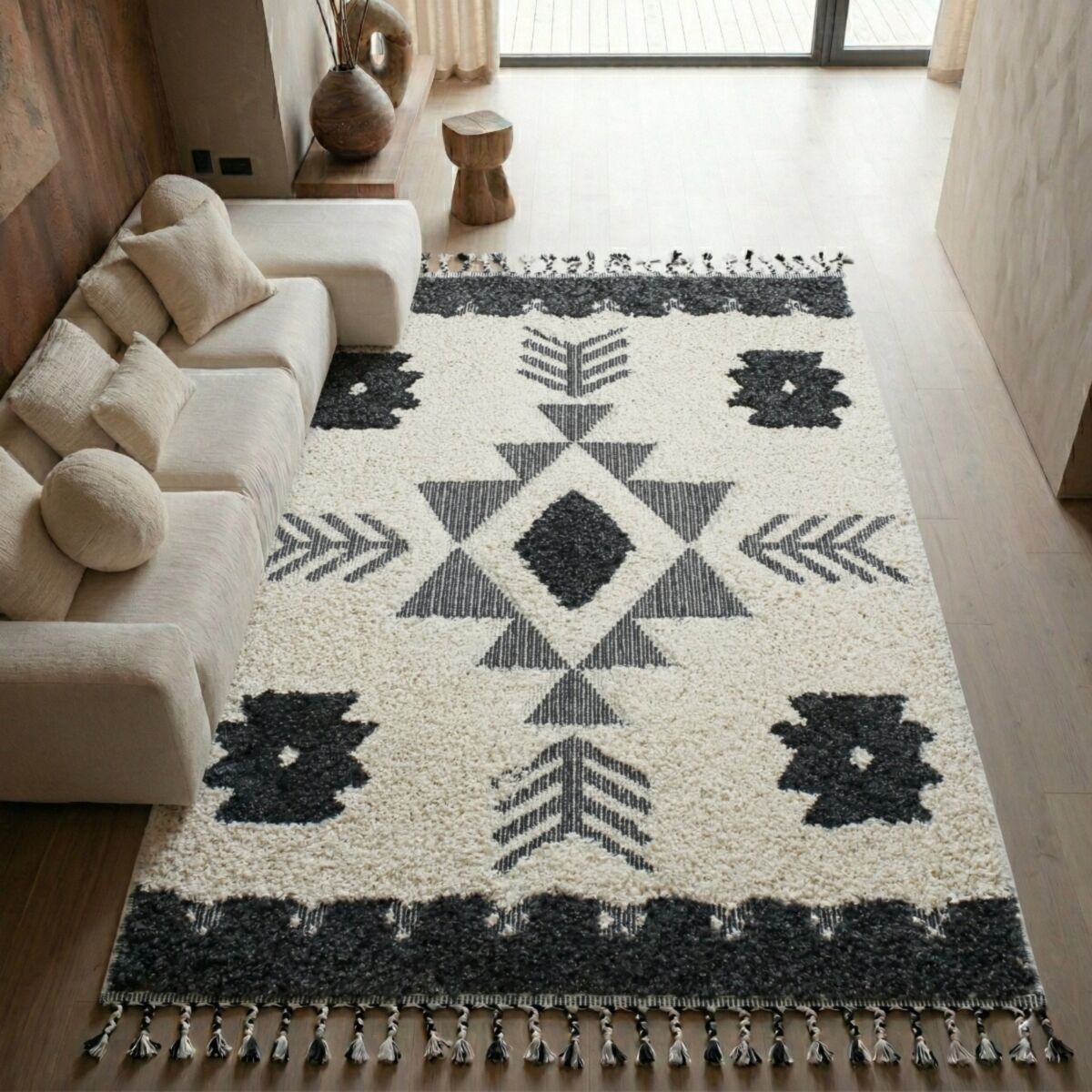 Tapis berbère à effet relief crème et gris foncé 120x170