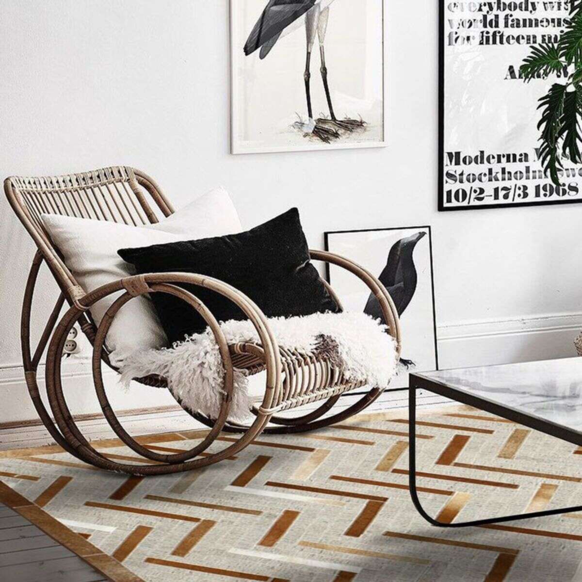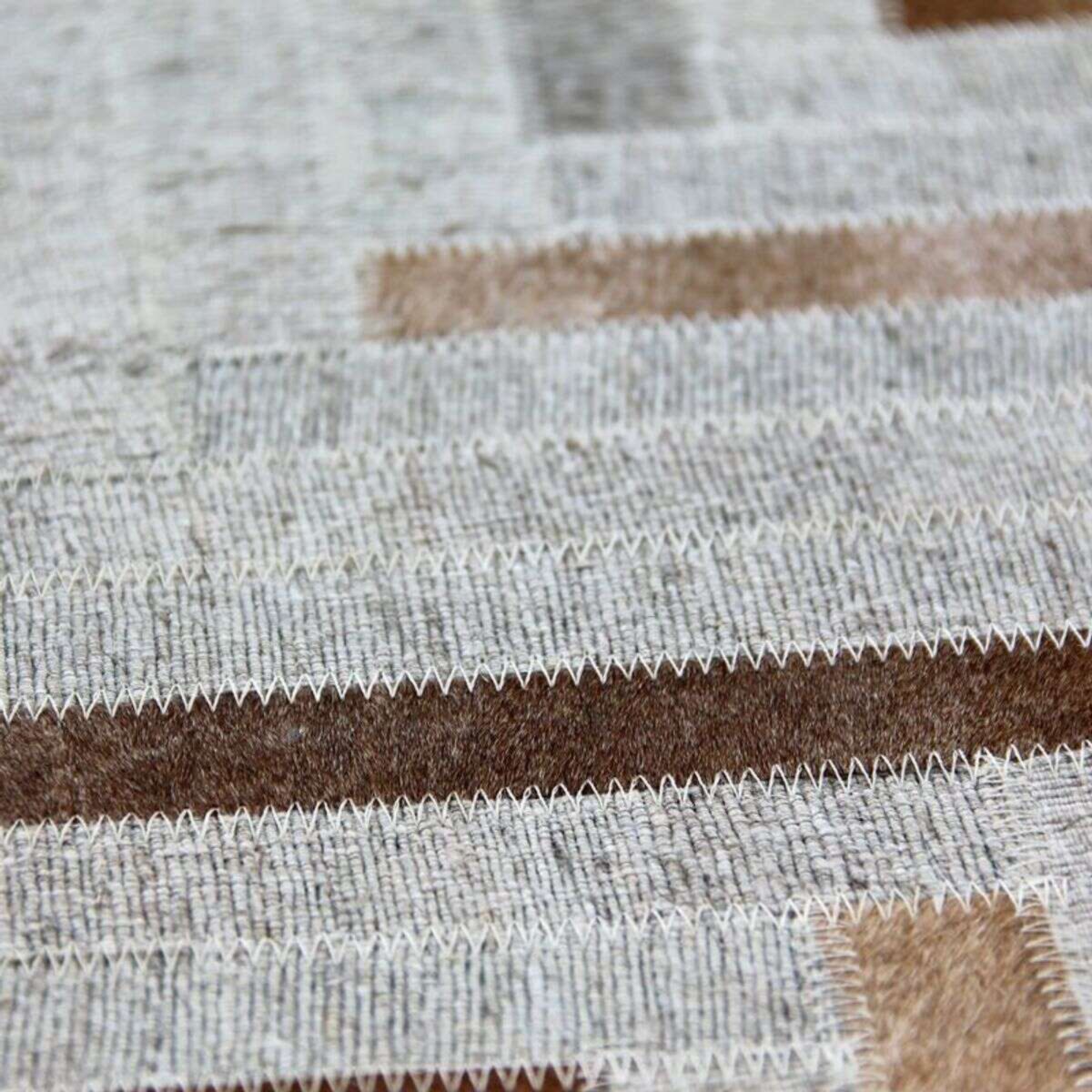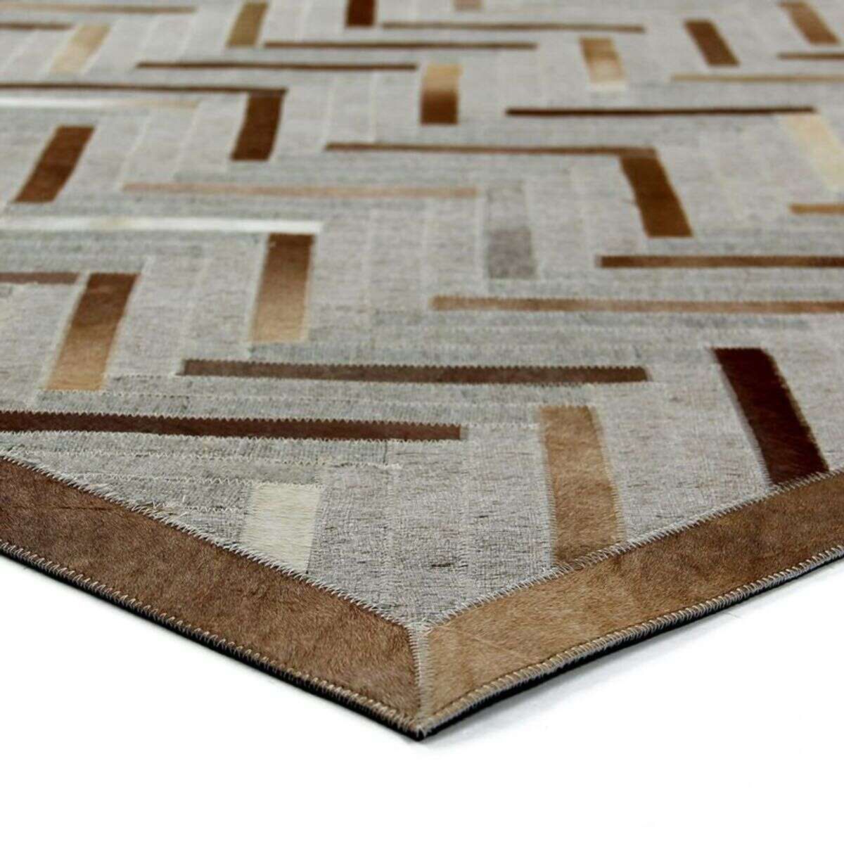 CUIR CHEVRON est un tapis Haut de Gamme alliant un patchwork de différents cuirs sous forme de motifs chevron. Il est idéal pour apporter une touche d'élégance, de luxe et de chaleur à votre intérieur.