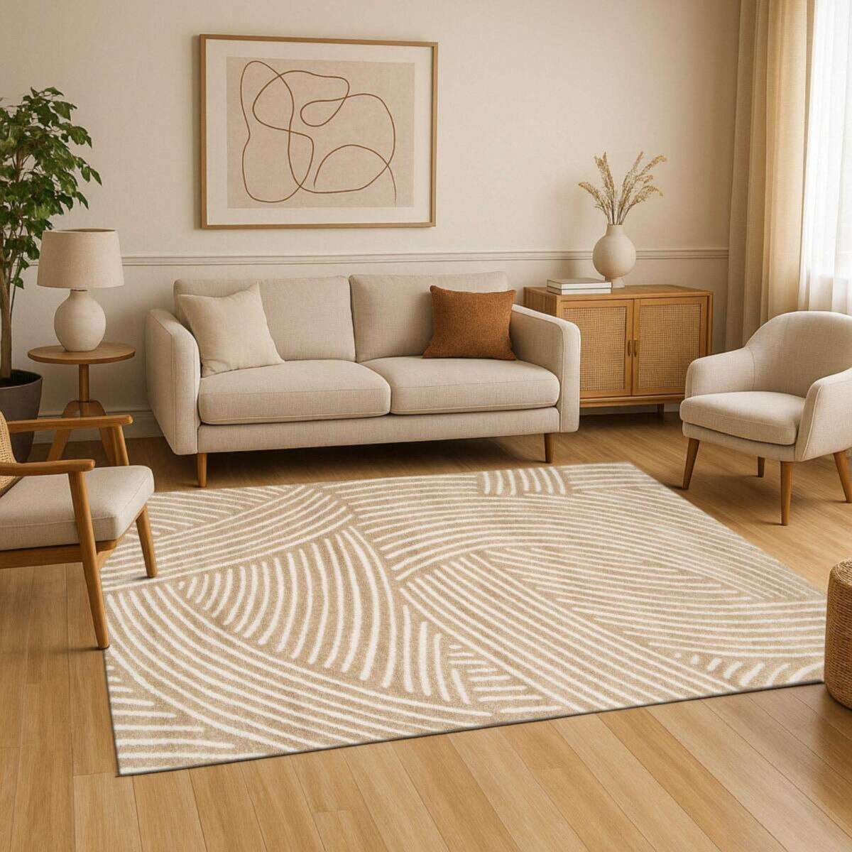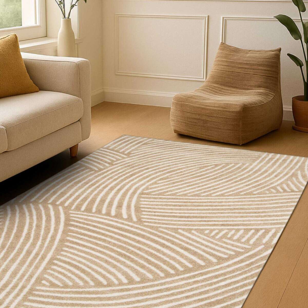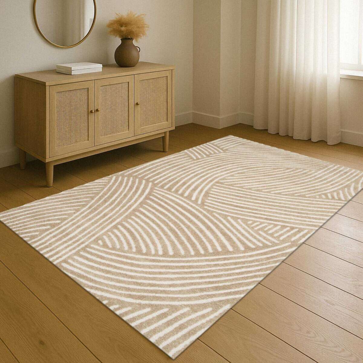 Tapis à reliefs doux géométrique beige 160x230