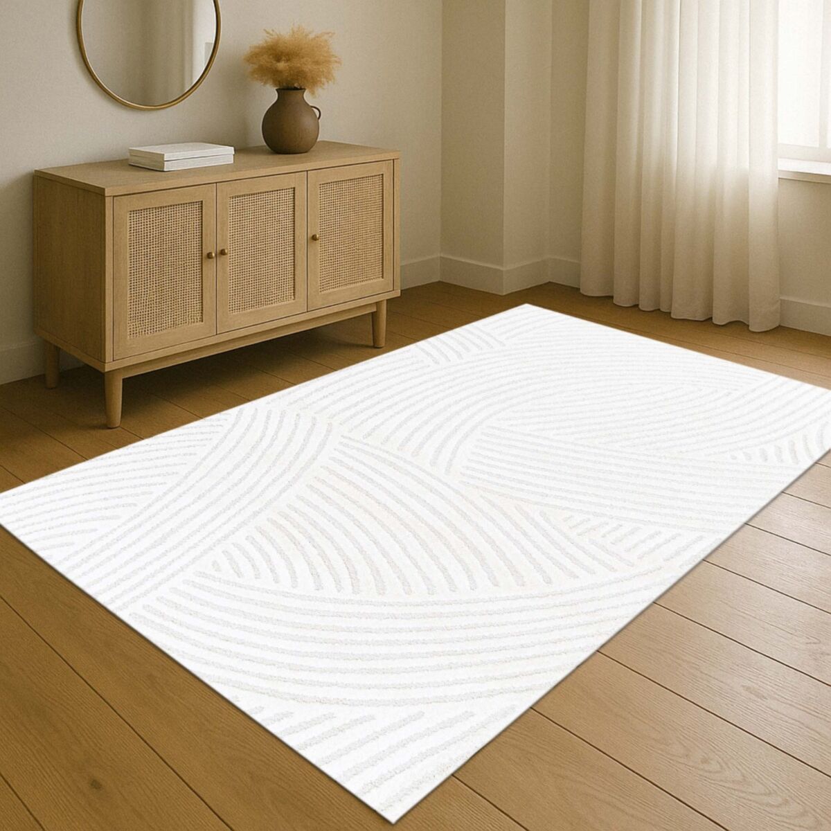 | description du produit_IT | Trasforma la tua casa in un vero e proprio nido di morbidezza con questo tappeto a rilievo curvo certificato Oeko-Tex, progettato per apportare calore, serenità ed eleganza moderna al tuo arredamento. Tessuto con una miscela di poliestere shrink e microfibre di polipropilene ultra-morbide, questo tappeto offre un tocco eccezionalmente soffice. L’effetto 3D dona profondità mantenendo un’estetica minimalista e rilassante, ideale per ambienti contemporanei, Japandi, cocooning o scandinavi. La sua alta qualità costruttiva garantisce un’eccellente durata nel tempo: un tappeto che non perde peli, resistente e facile da mantenere. Compatibile con il riscaldamento a pavimento, si integra facilmente in un soggiorno, una camera o uno spazio relax grazie al colore bianco écru luminoso e senza tempo. Caratteristiche: