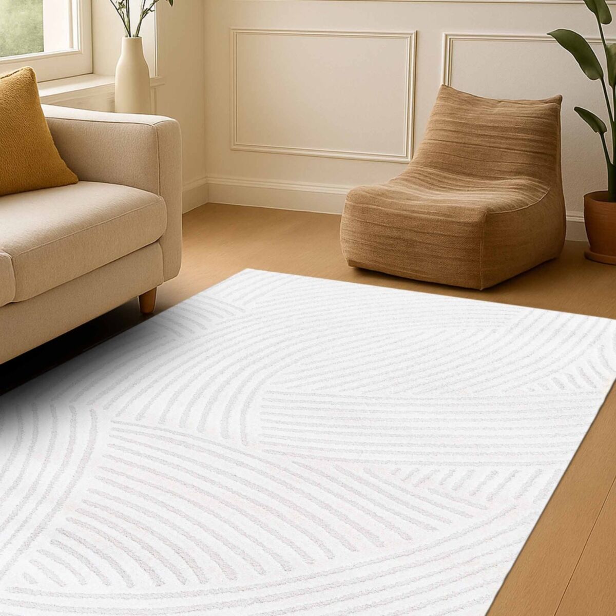 Tissé à partir d’un mélange de polyester shrink et de microfibres de polypropylène ultra douces, ce tapis offre un toucher exceptionnellement moelleux. Son rendu 3D apporte de la profondeur tout en conservant une esthétique minimaliste et apaisante, idéale pour les intérieurs contemporains, Japandi, cocooning ou scandinaves.