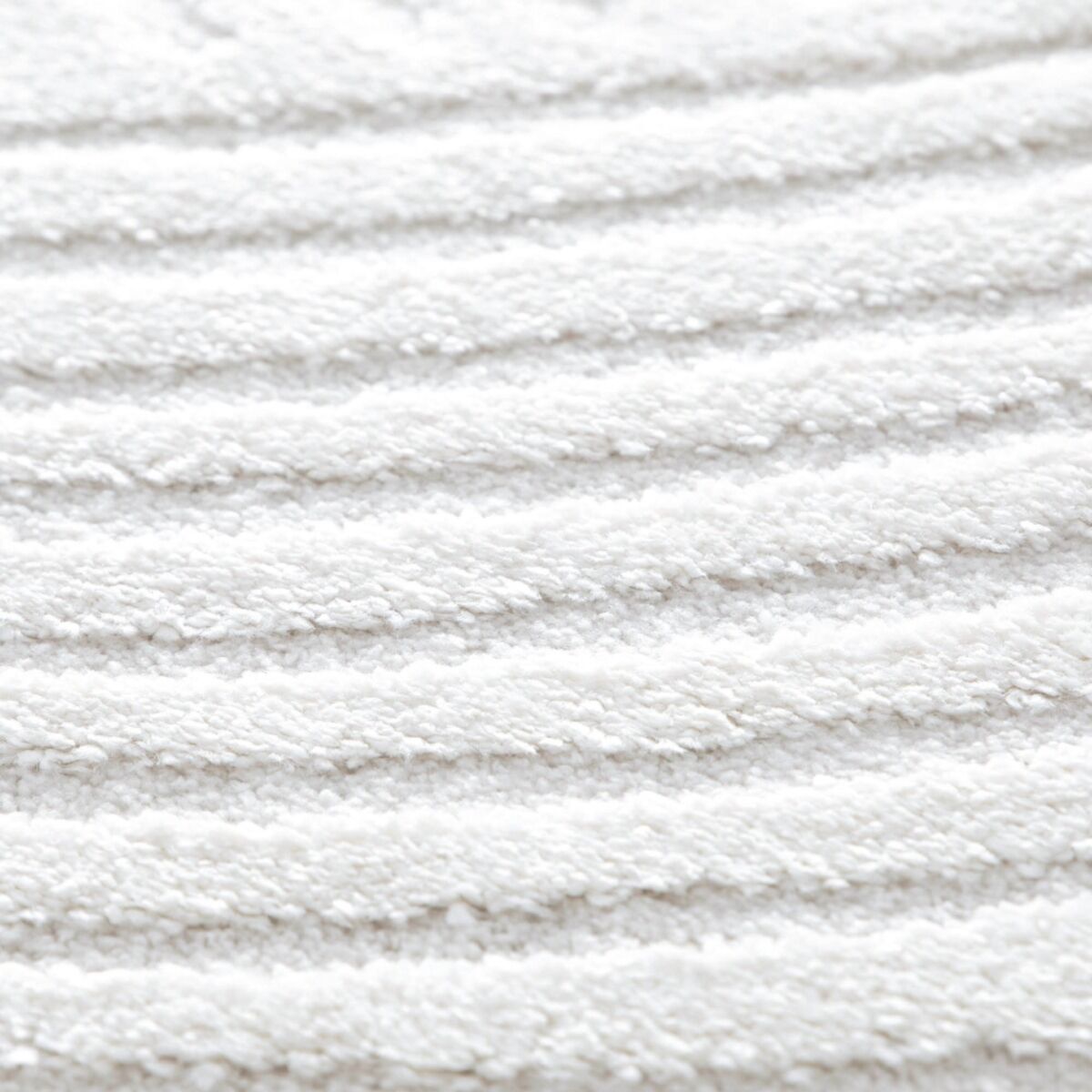 Sa fabrication de haute qualité garantit une excellente tenue dans le temps, un tapis non pelucheux, durable et simple à entretenir. Compatible avec le chauffage au sol, il s'intègre facilement dans un salon, une chambre ou un espace détente grâce à sa couleur blanc écru lumineuse et intemporelle.
