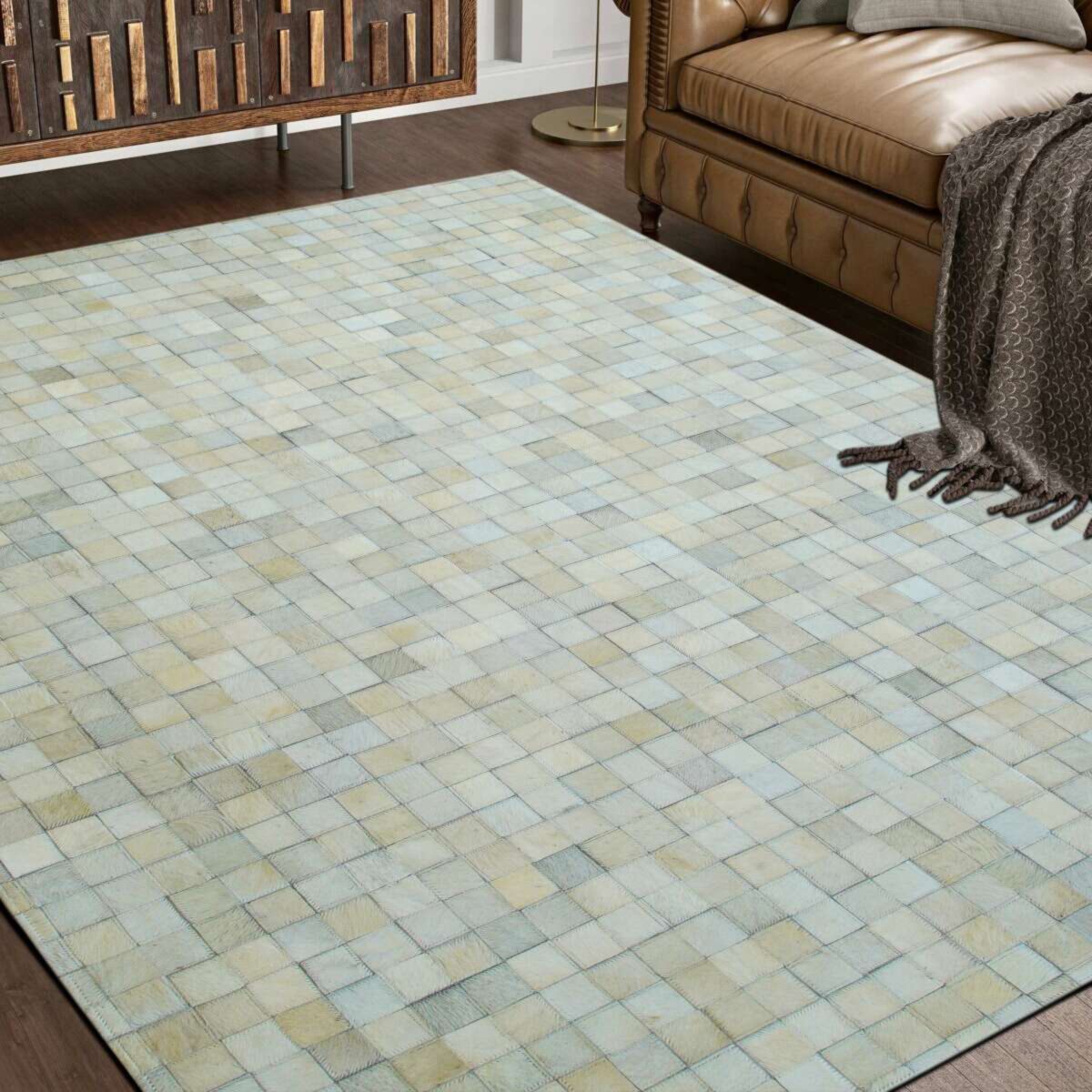 Tapis en cuir naturel recyclé mosaïque blanc 120x170