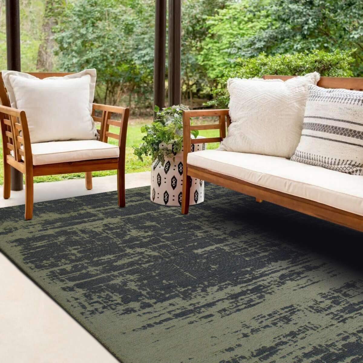 Tapis abstrait moderne vert kaki 123x180