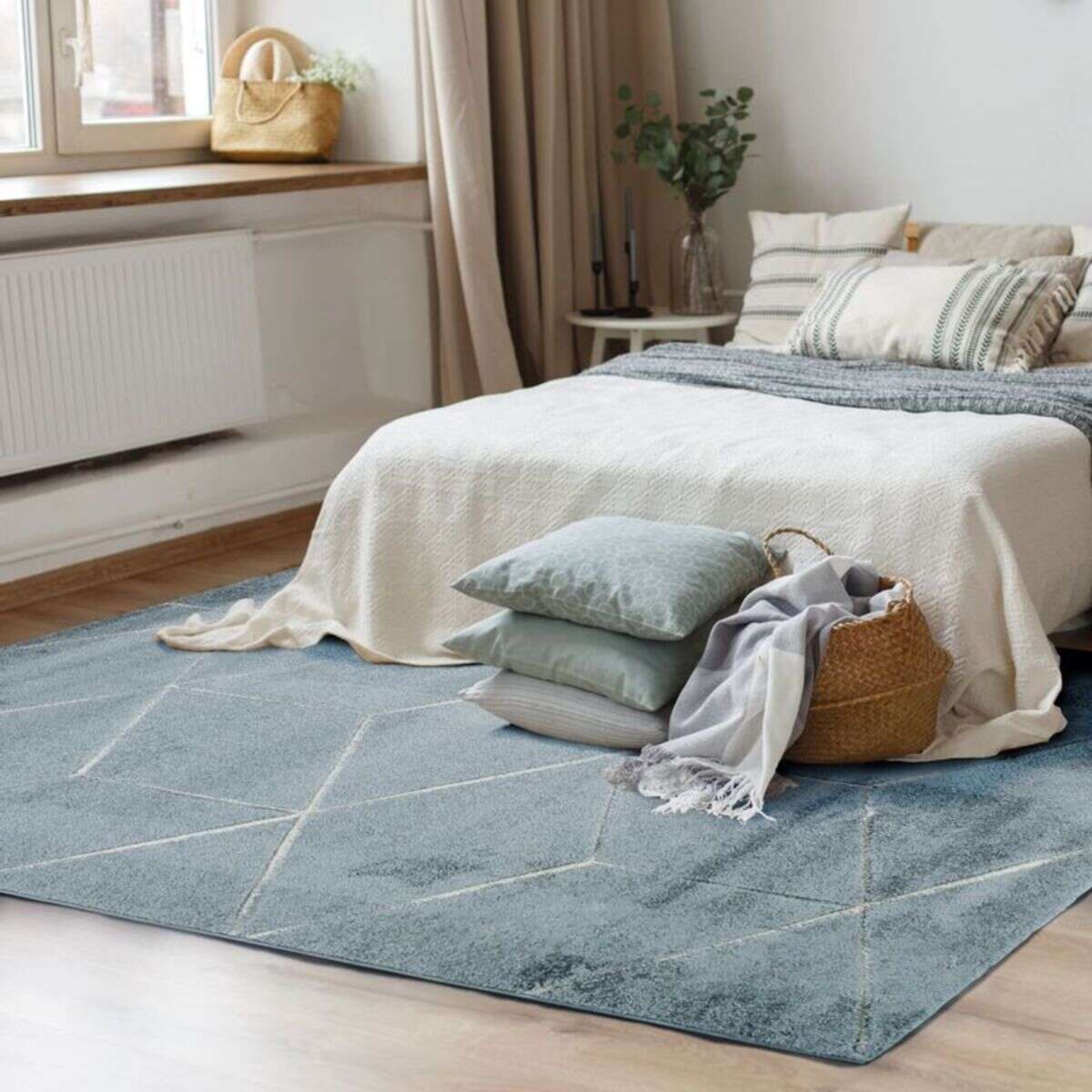 Superbe tapis à motifs géométriques aux couleurs pastels parfait pour un intérieur de style scandinave.