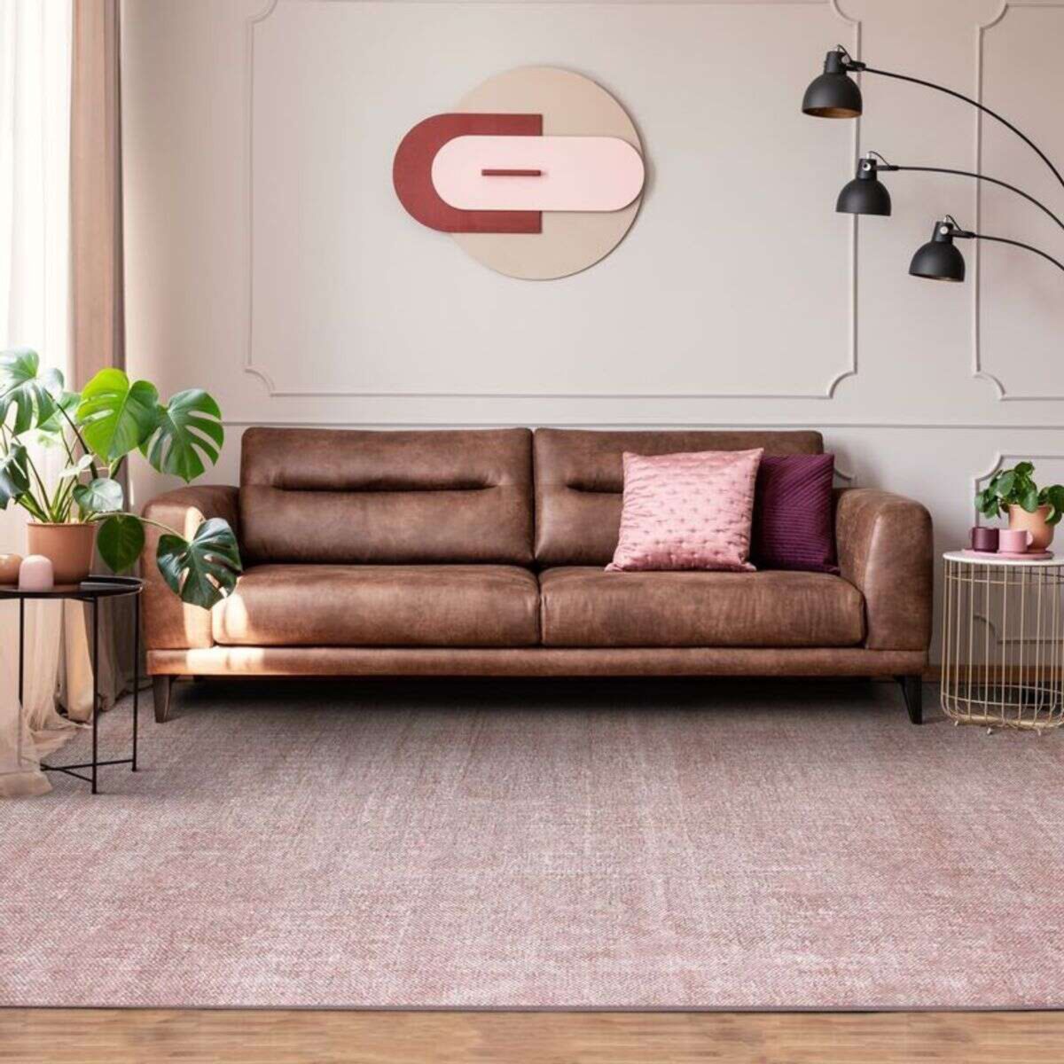 Tapis effet délavé rose poudré 190x290