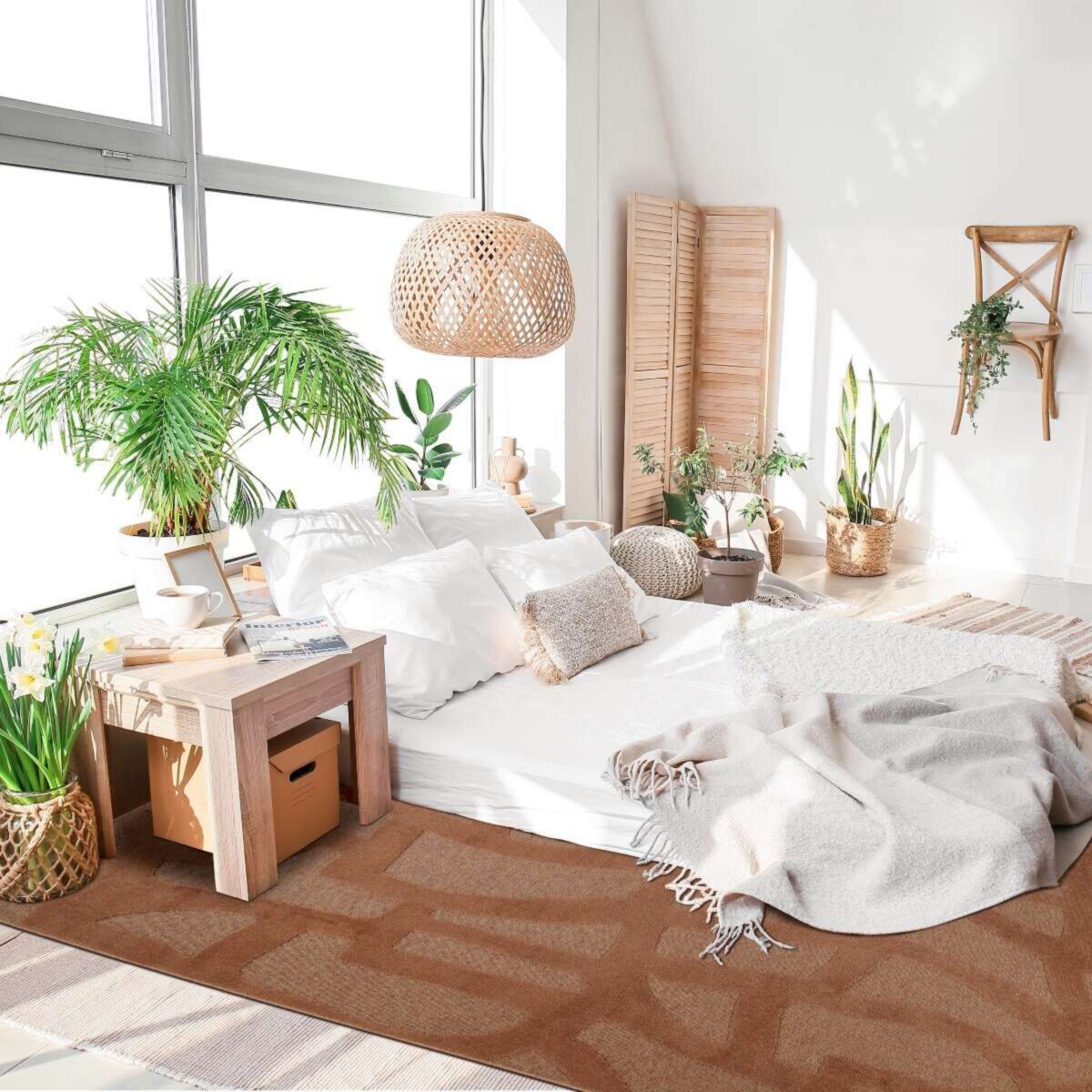 Tapis graphique motifs en relief terra cotta 160x230