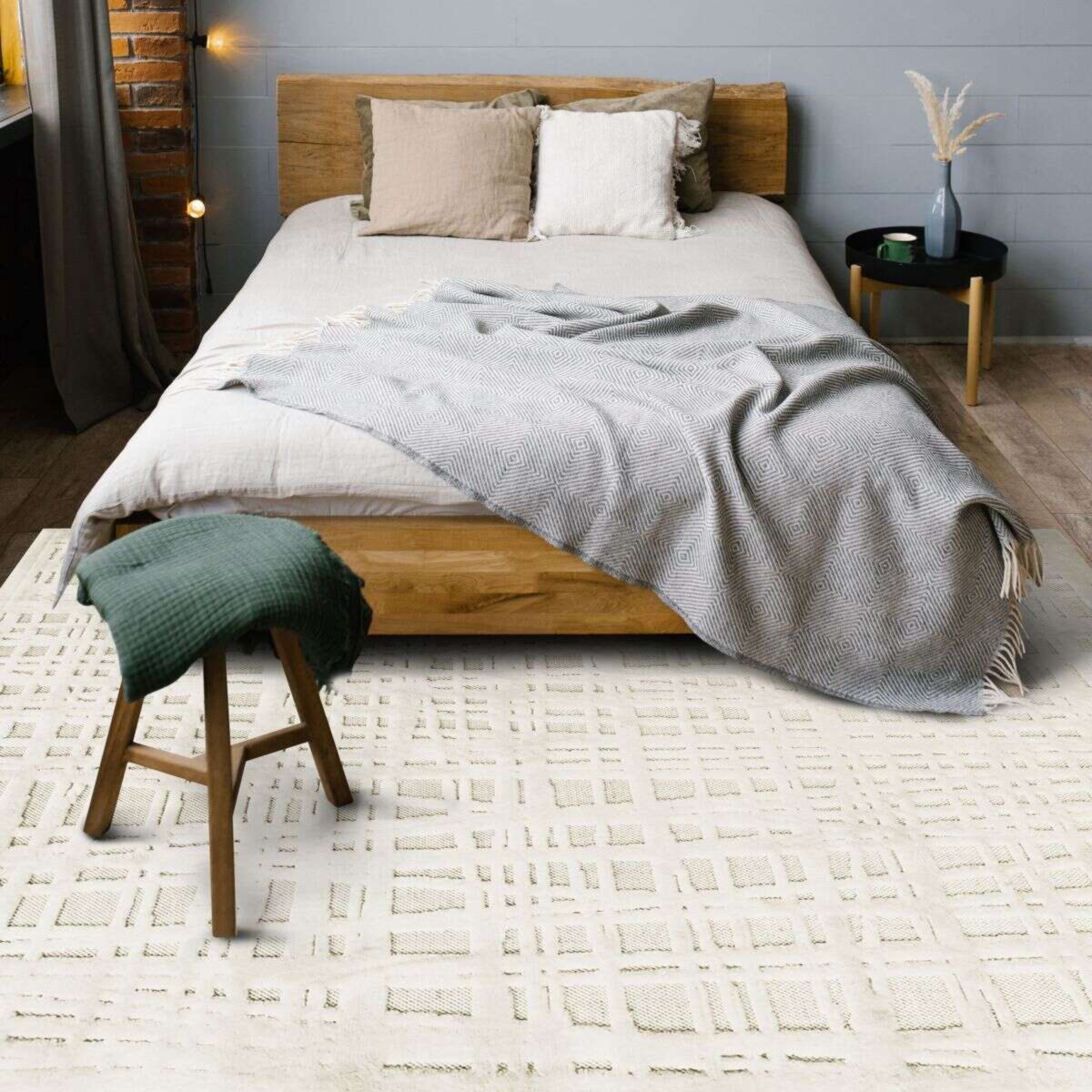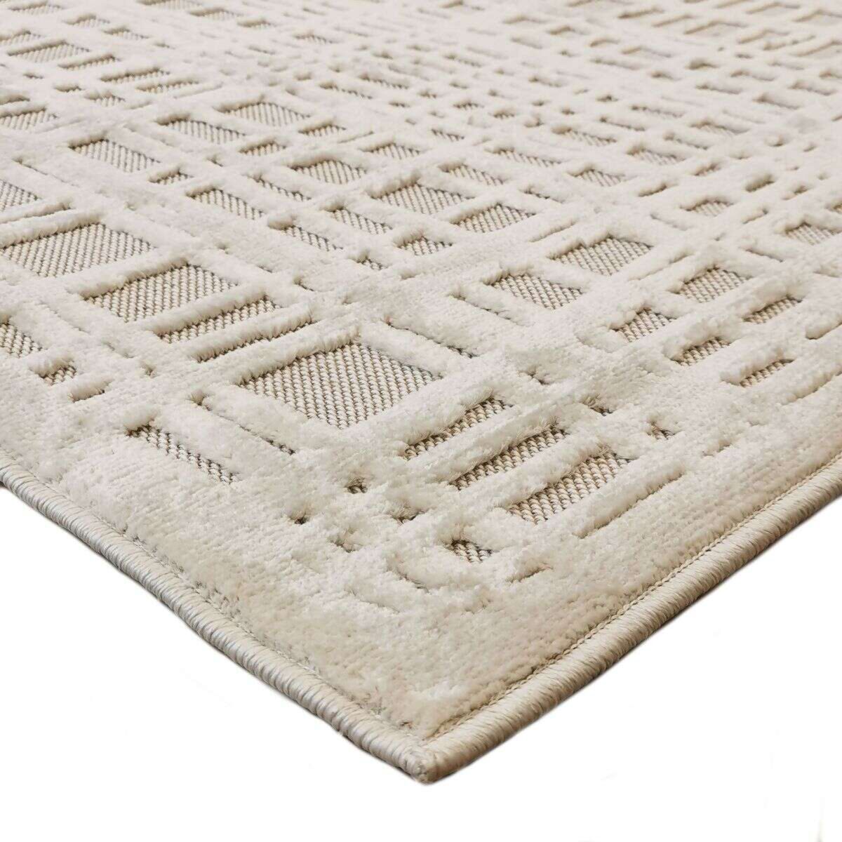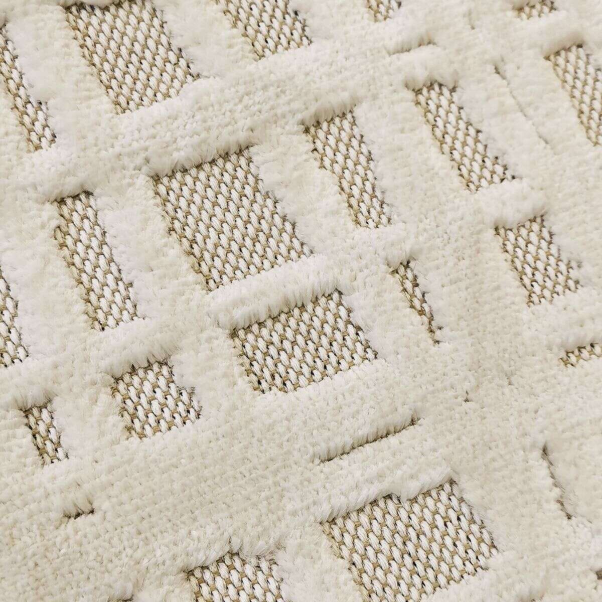 Tapis avec relief motif chaîne et trame naturel 160x230