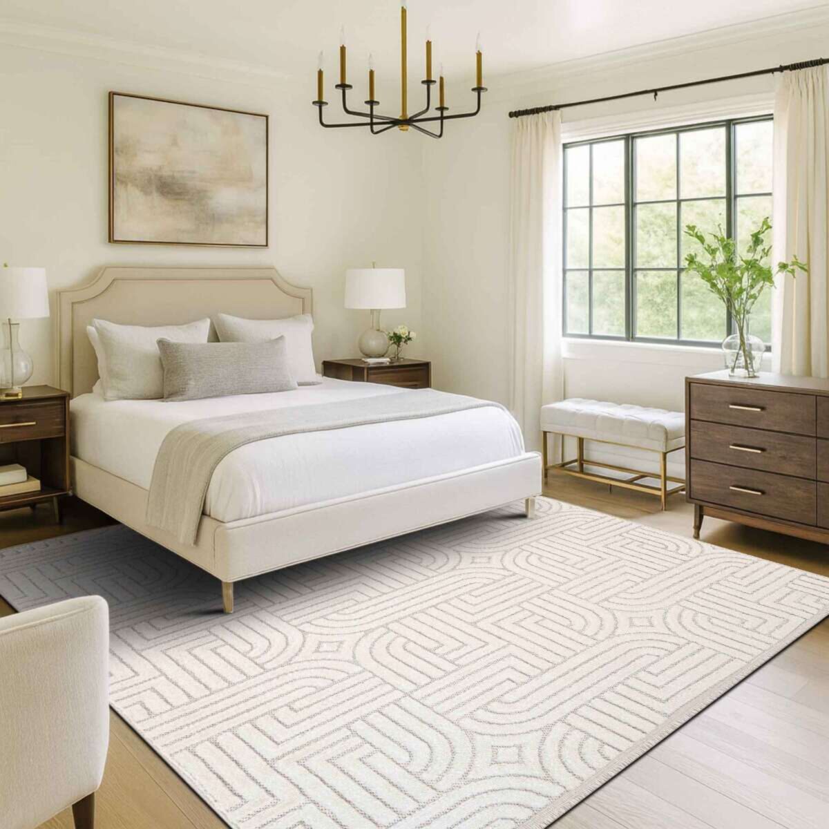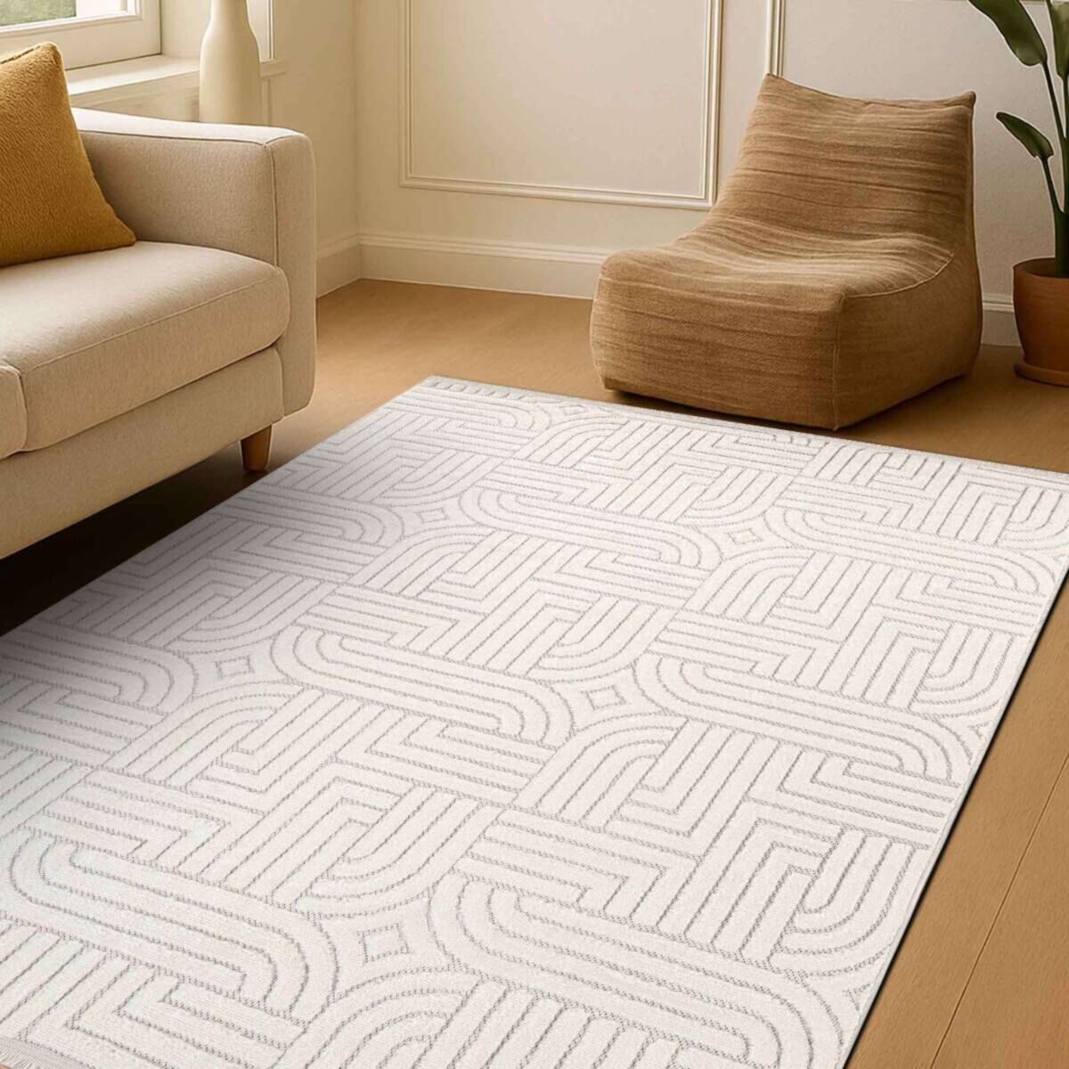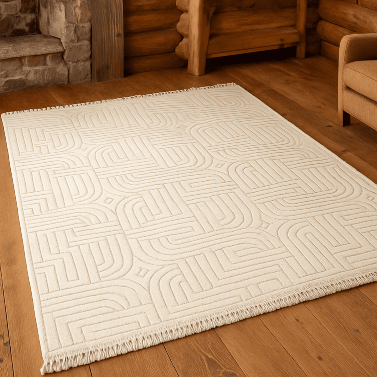 | description du produit_DE | Verleihen Sie Ihrem Zuhause Eleganz mit diesem OEKO-TEX-zertifizierten Teppich, der Modernität und Raffinesse vereint. Mit seinem Ton-in-Ton-Relief und den fein gearbeiteten geometrischen Mustern bringt er eine zeitgenössische Note, bleibt dabei aber dezent und stilvoll. Sein helles Ecru vergrößert den Raum optisch und lässt sich leicht mit jedem Einrichtungsstil kombinieren, ob modernes Wohnzimmer, gemütliches Schlafzimmer oder elegantes Esszimmer. Gefertigt aus einem weichen und widerstandsfähigen Material, überzeugt er sowohl durch Komfort als auch durch Langlebigkeit. Die OEKO-TEX-Zertifizierung garantiert einen Teppich ohne schädliche Substanzen, der Ihre Gesundheit und die Umwelt schützt. Eigenschaften: Material: weich und strapazierfähig OEKO-TEX-Zertifizierung: frei von Schadstoffen Geometrische Reliefmuster Zeitloser Ecru-Farbton Ideal für eine moderne, minimalistische und elegante Einrichtung |