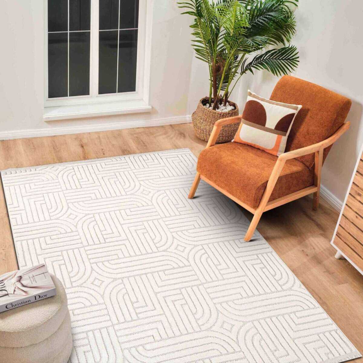 Sublimez votre intérieur avec ce tapis, certifié OEKO-TEX®, qui allie modernité et raffinement. Avec son relief graphique en ton sur ton et ses motifs géométriques délicatement travaillés, il apporte une touche contemporaine tout en restant sobre et élégant.