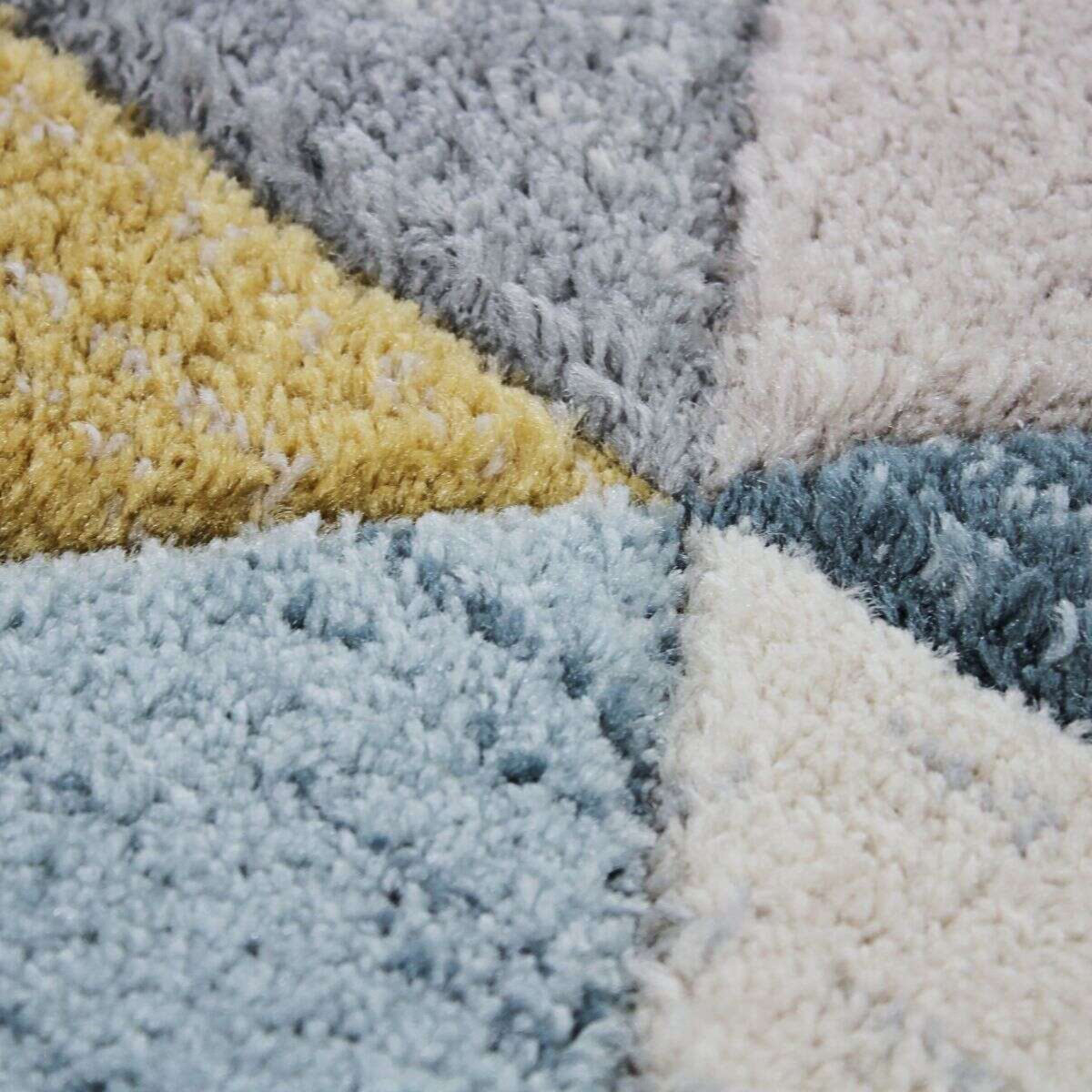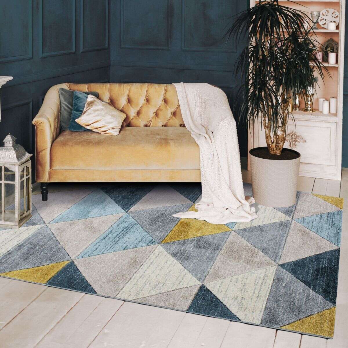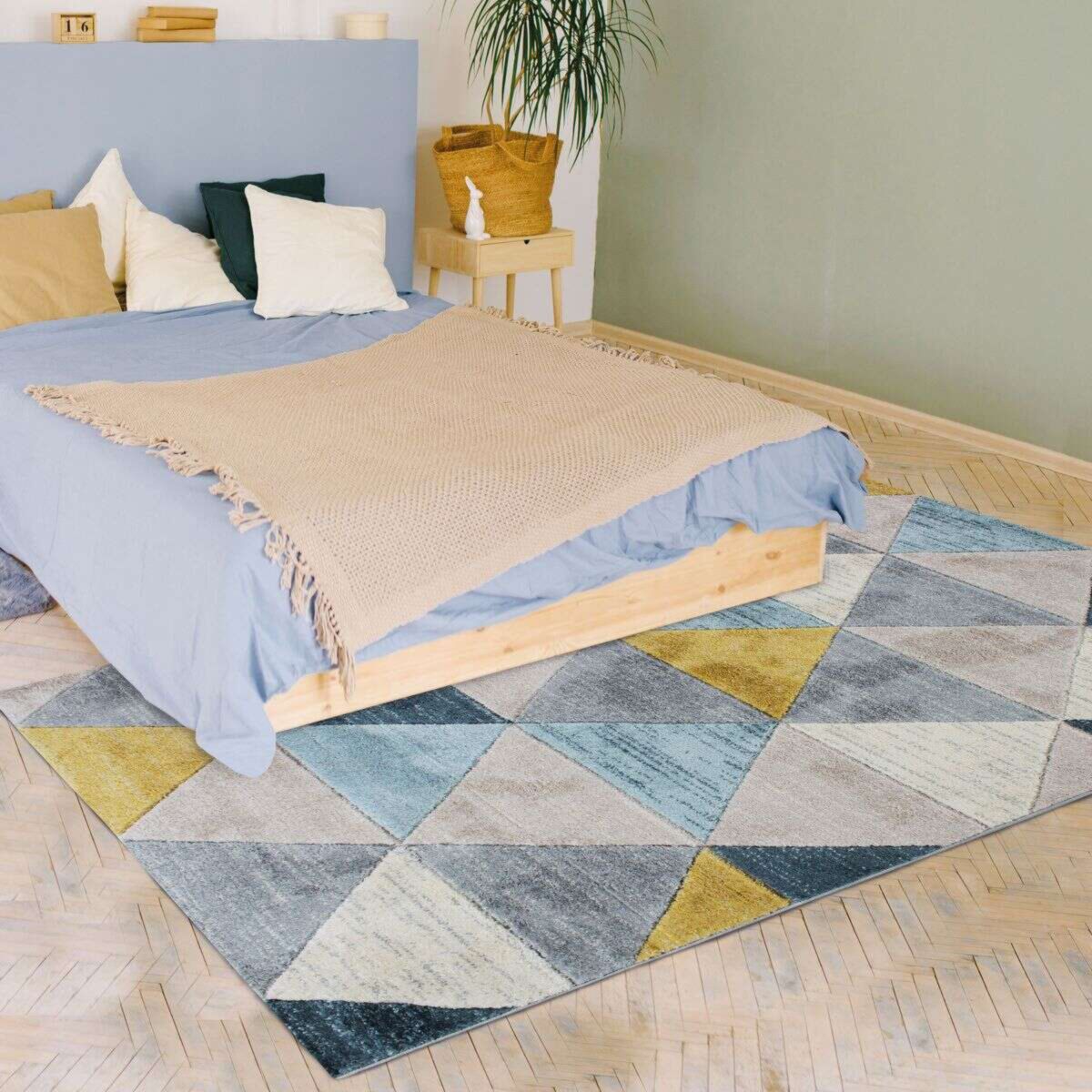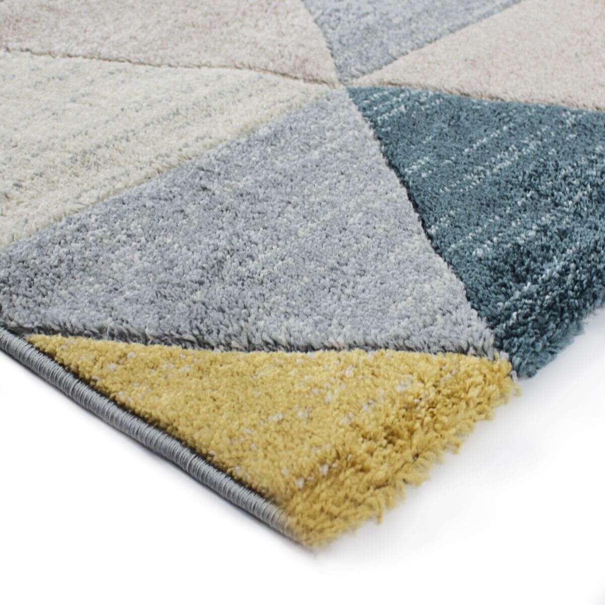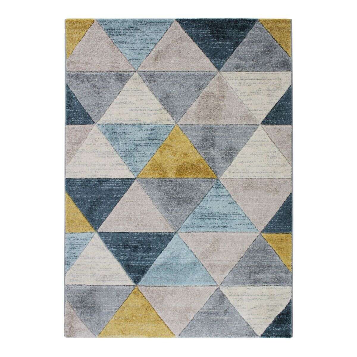 Tapis aspect laineux motif triangles bleu et jaune 160x230