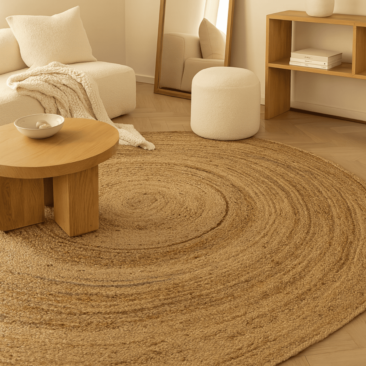 Tapis rond en jute tressé naturel artisanal D120