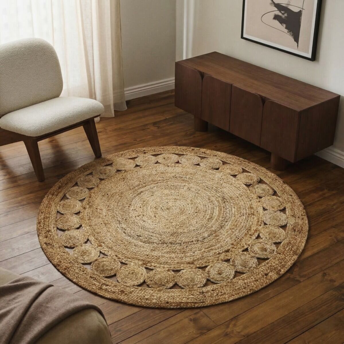 Tapis rond en jute rosace naturel diam.70