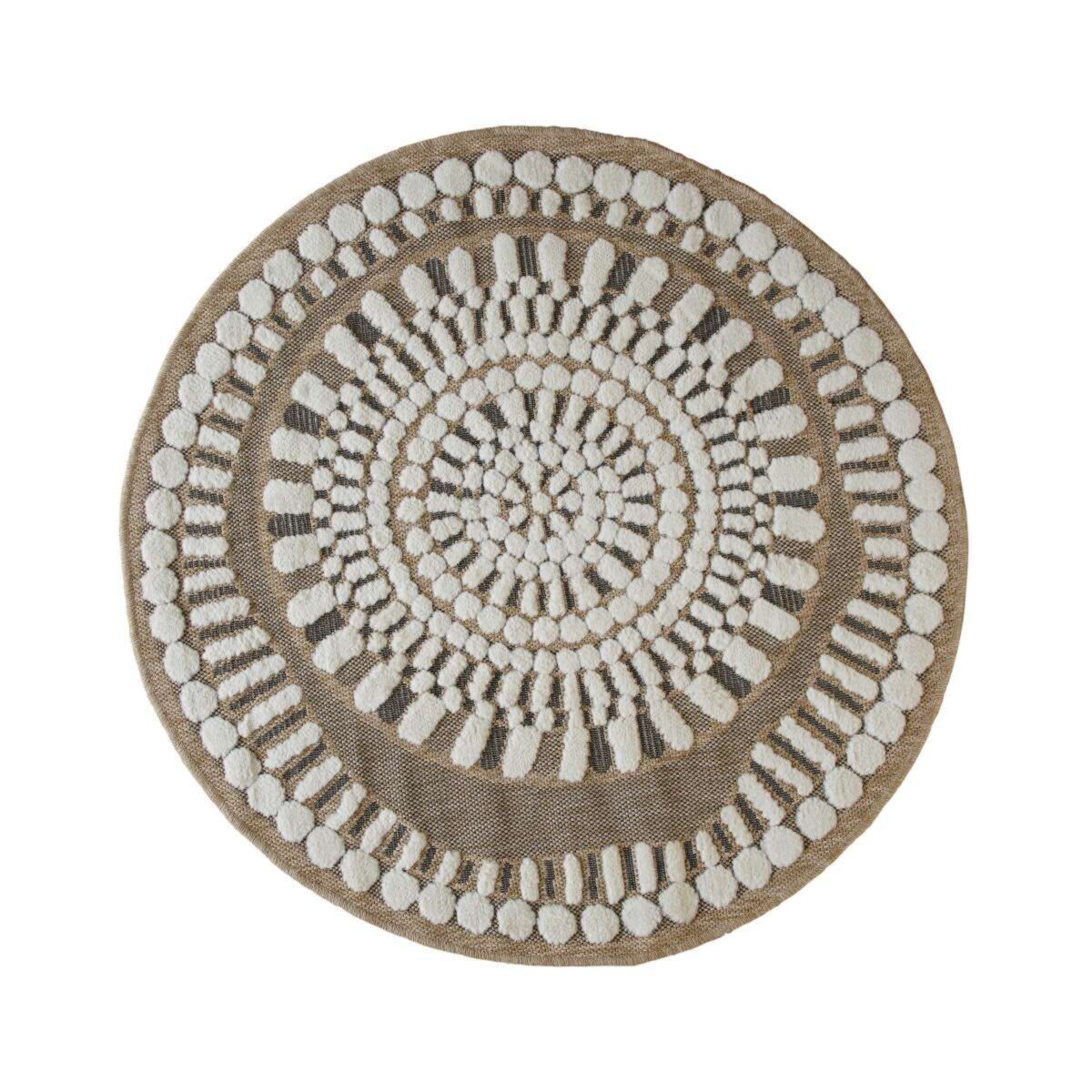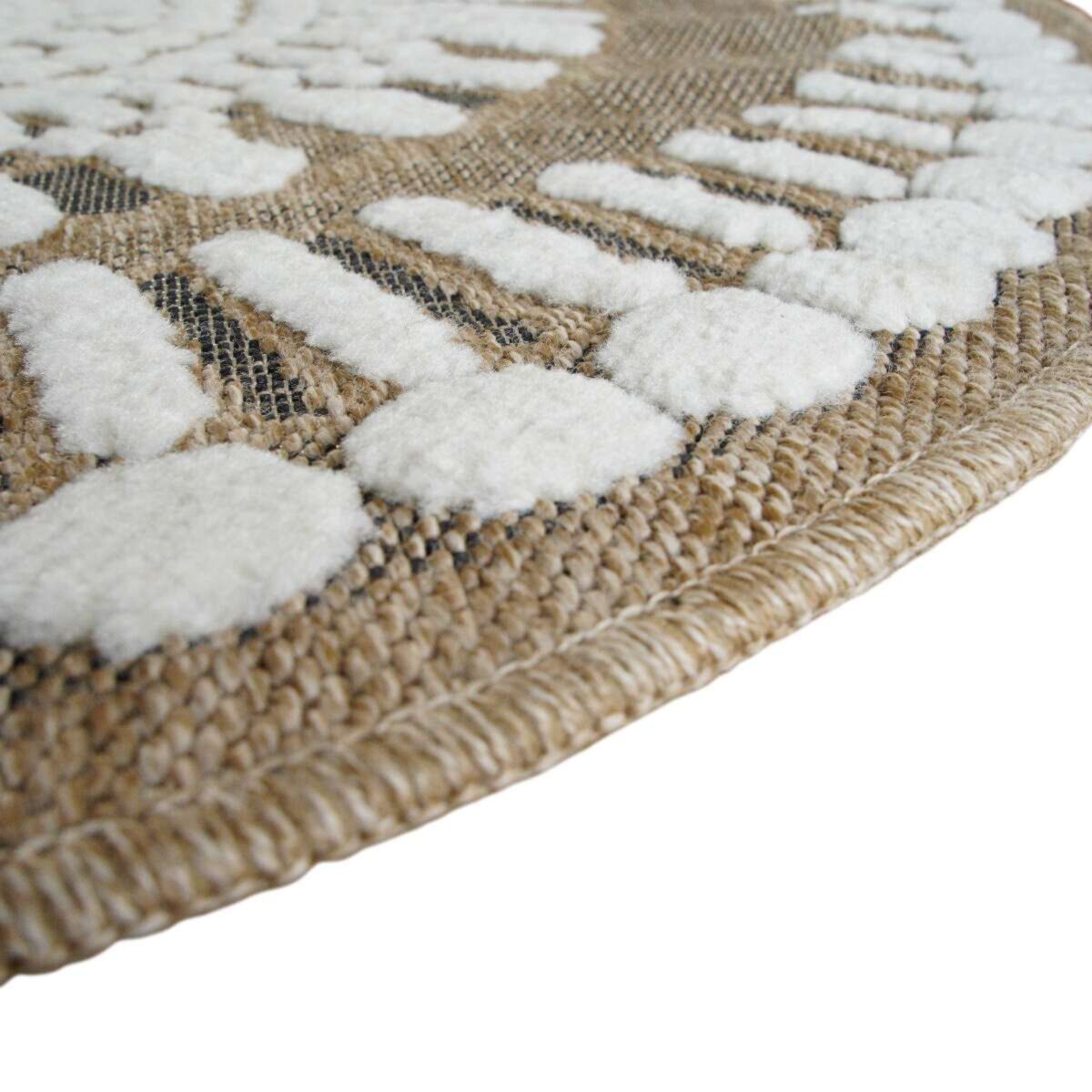 Tapis rond effet jute motifs en relief blanc diamètre 120