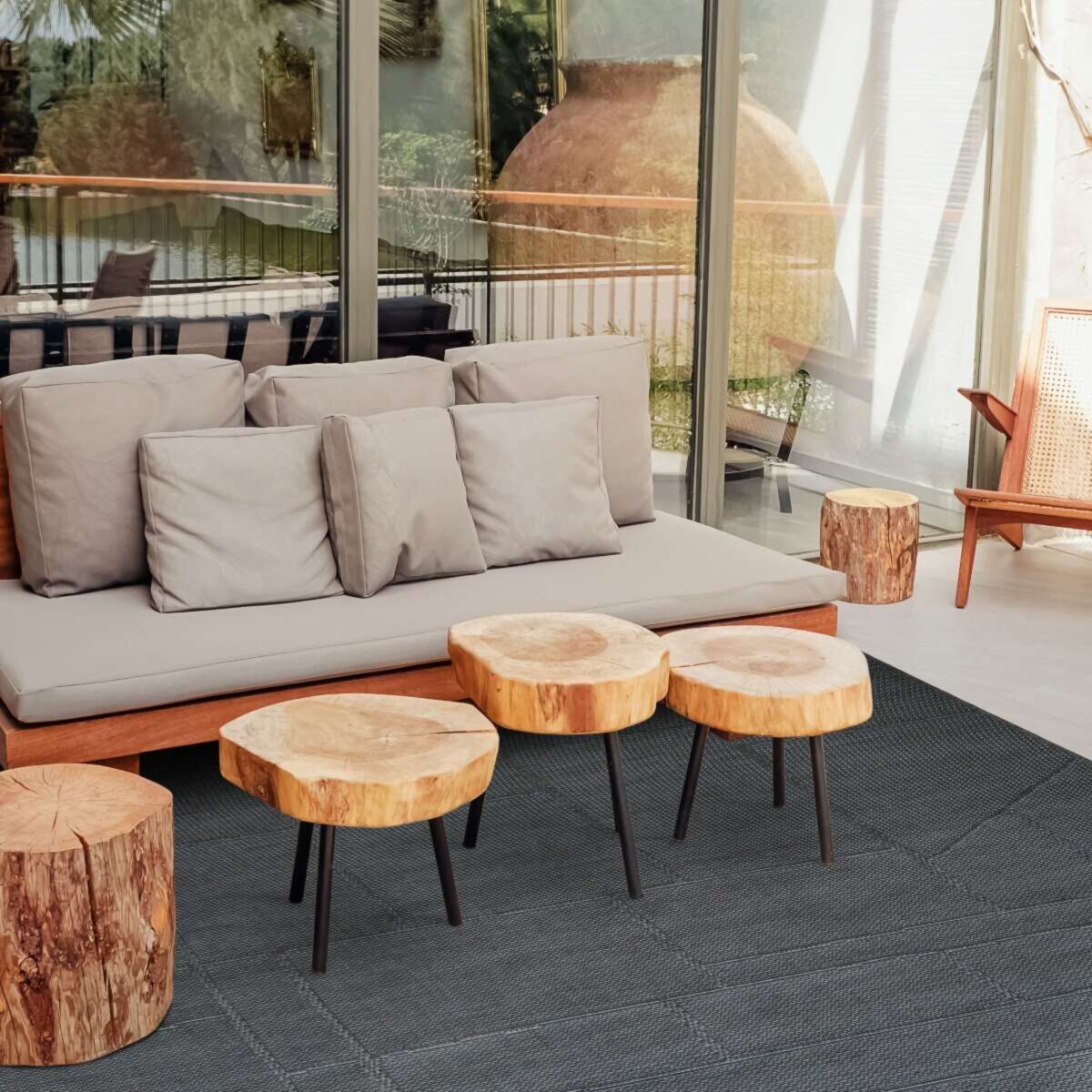 Leur tissage graphique ou texturé, inspiré de la fibre végétale, apporte un joli relief au sol sans en faire trop. Grâce à leur résistance à l’humidité, aux UV et aux passages fréquents, ils s’adaptent à tous les espaces de la maison : salon, chambre, bureau, entrée, terrasse ou véranda.