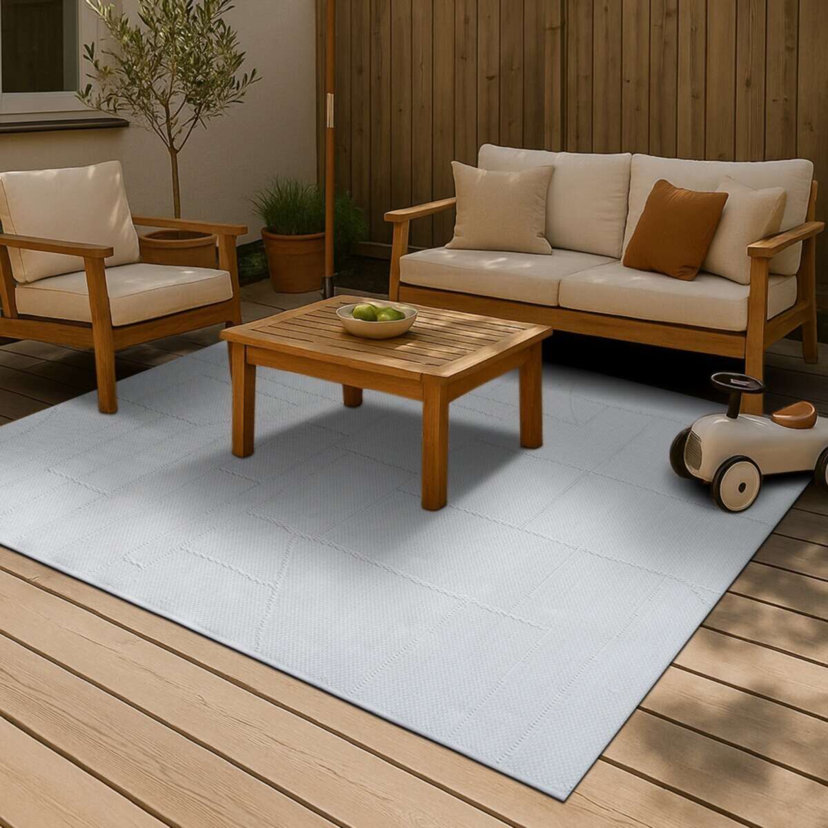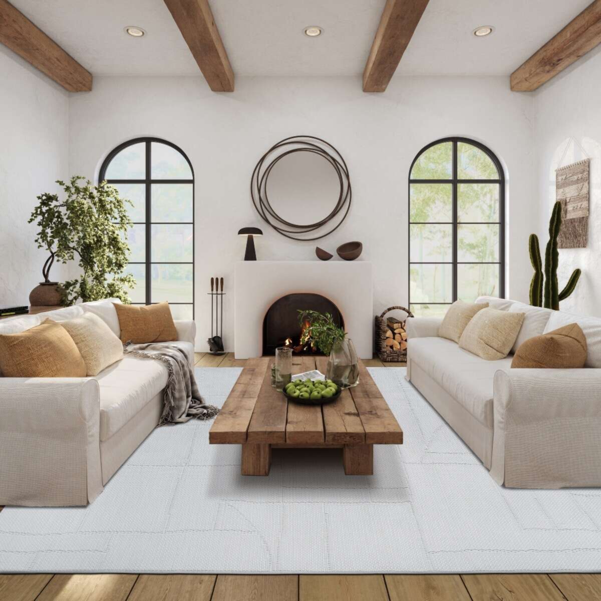 Leur tissage graphique ou texturé, inspiré de la fibre végétale, apporte un joli relief au sol sans en faire trop. Grâce à leur résistance à l’humidité, aux UV et aux passages fréquents, ils s’adaptent à tous les espaces de la maison : salon, chambre, bureau, entrée, terrasse ou véranda.