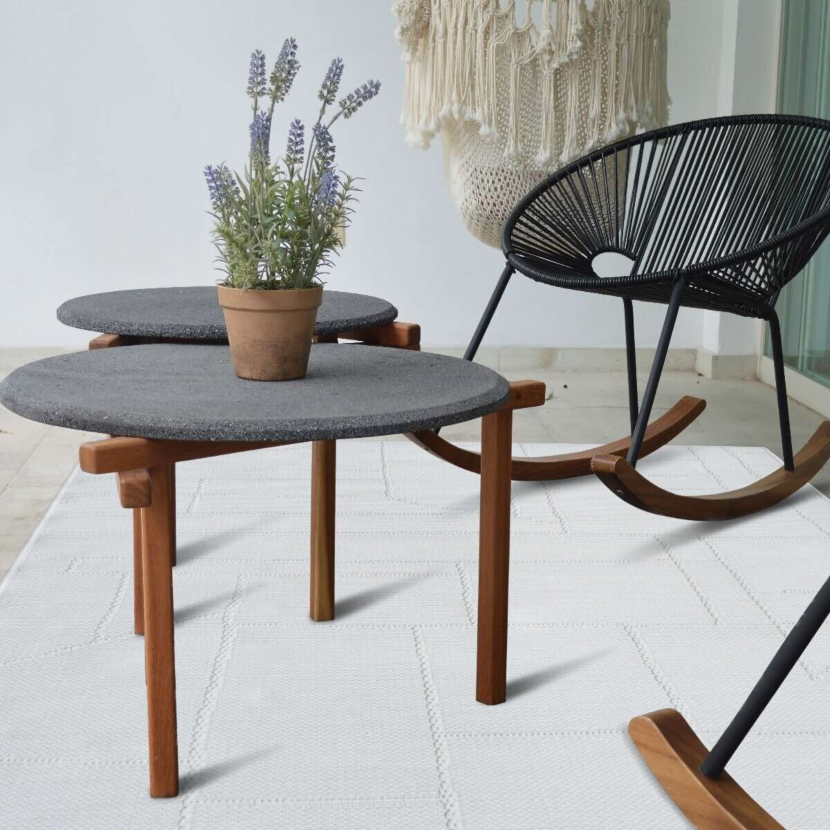 Ces tapis tissés certifiés OEKO-TEX mêlent esthétique brute et praticité, pour un usage aussi bien en intérieur qu’en extérieur.