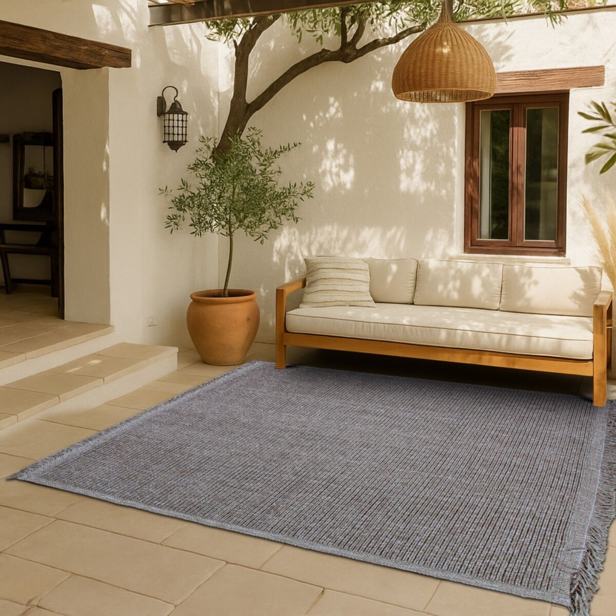 Conçu pour durer, ce tapis allie le charme authentique du jute à la robustesse du polypropylène, une fibre reconnue pour sa résistance à l'humidité, aux UV et à l'usure quotidienne. Il trouvera facilement sa place dans un salon, une véranda, un balcon ou sur une terrasse couverte.
