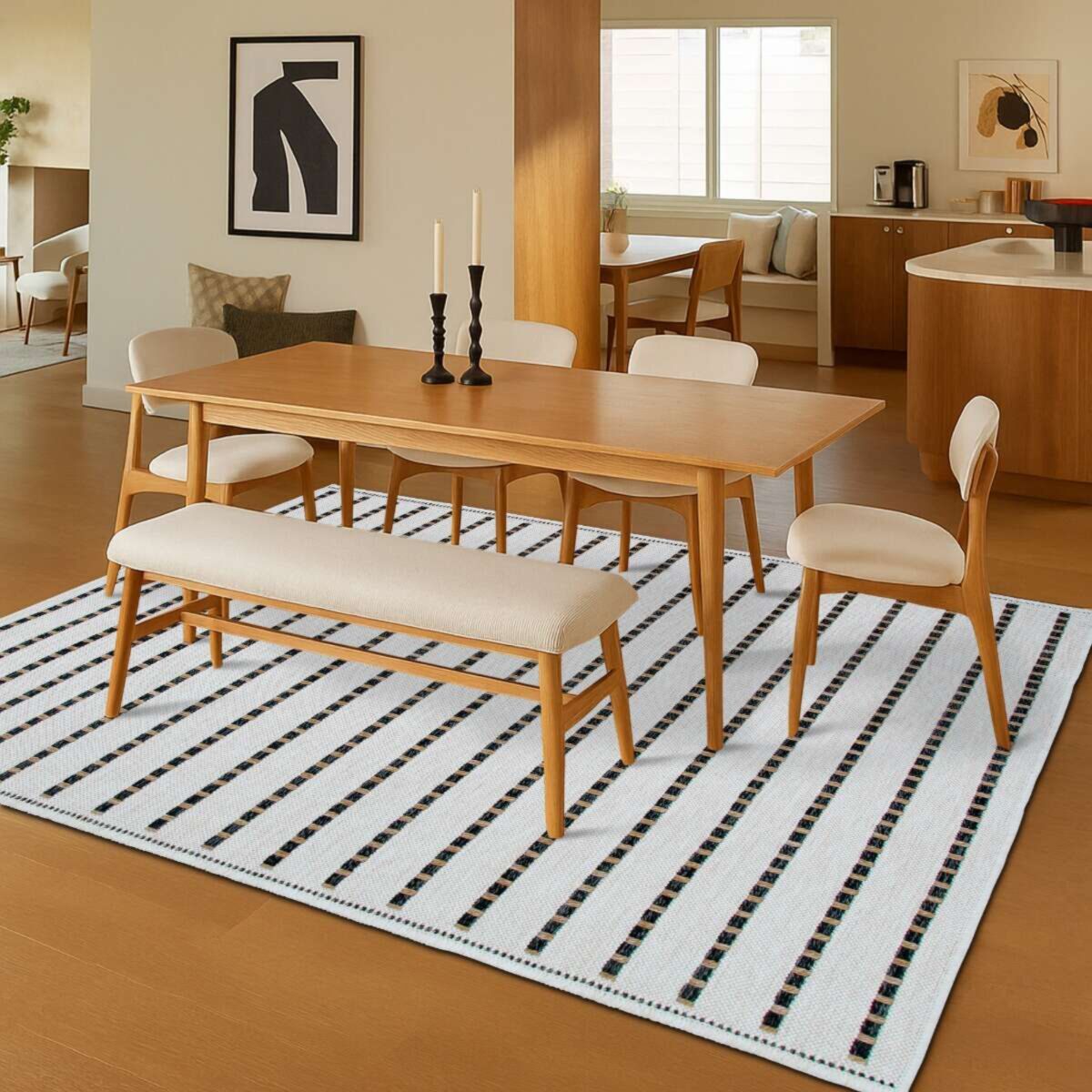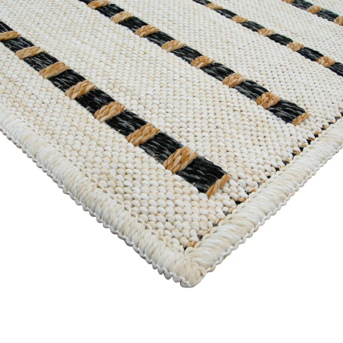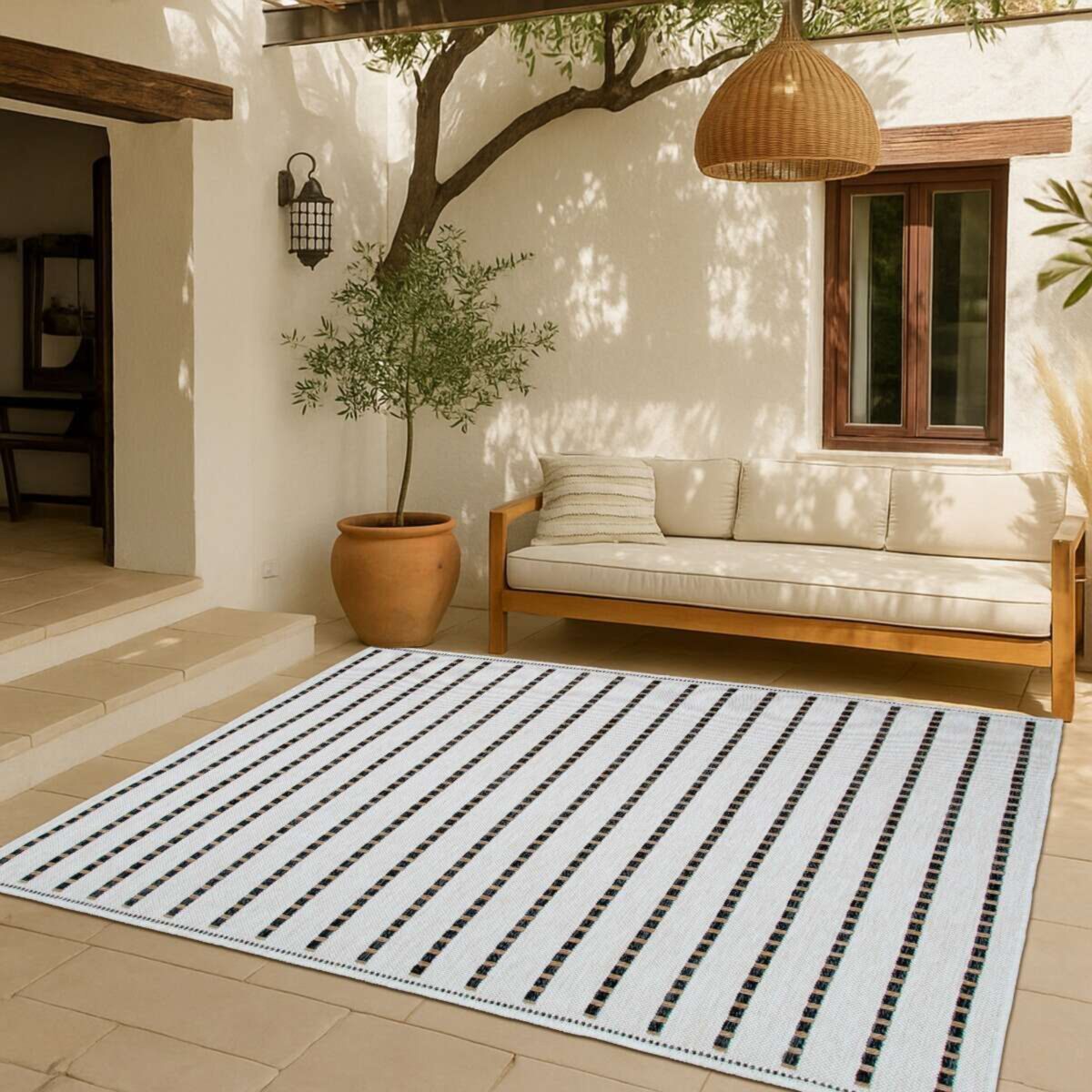 Tapis aspect jute intérieur extérieur rayures noires blanches 120x160