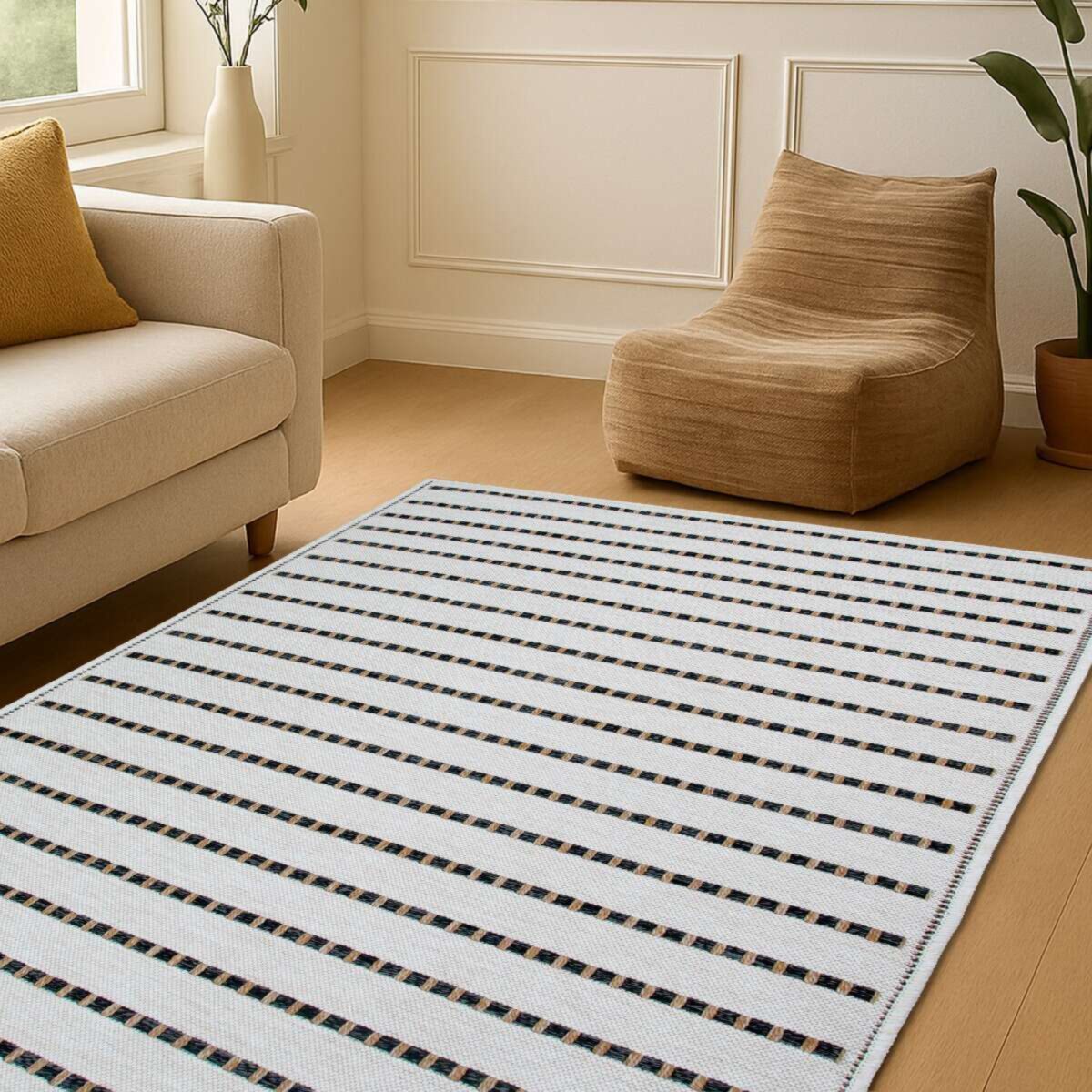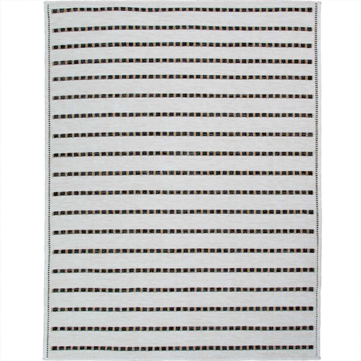 Tapis aspect jute intérieur extérieur rayures noires blanches 190x290