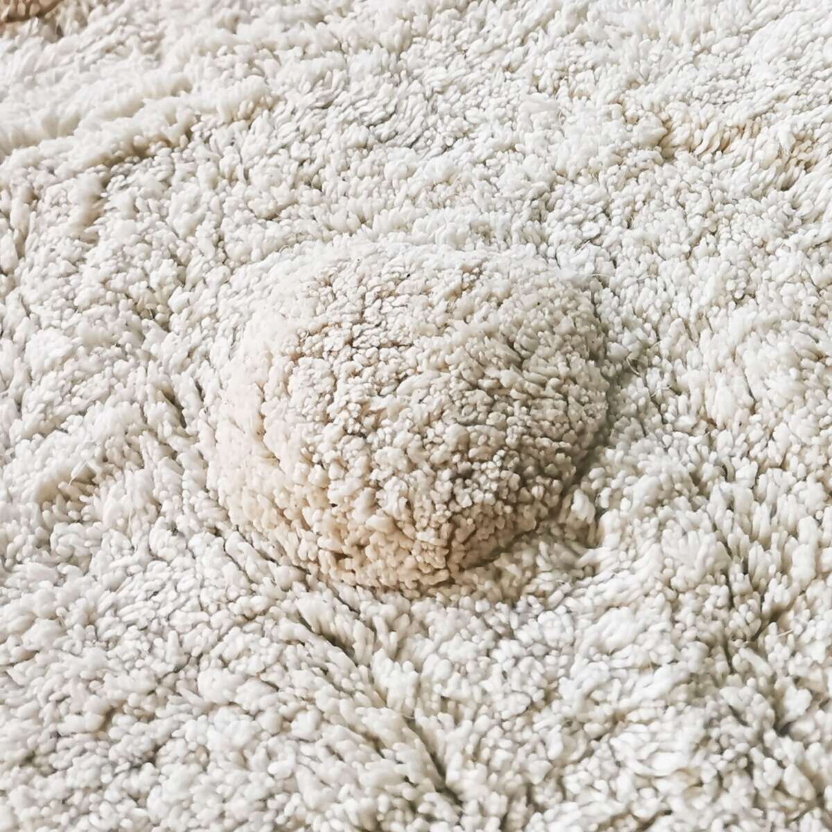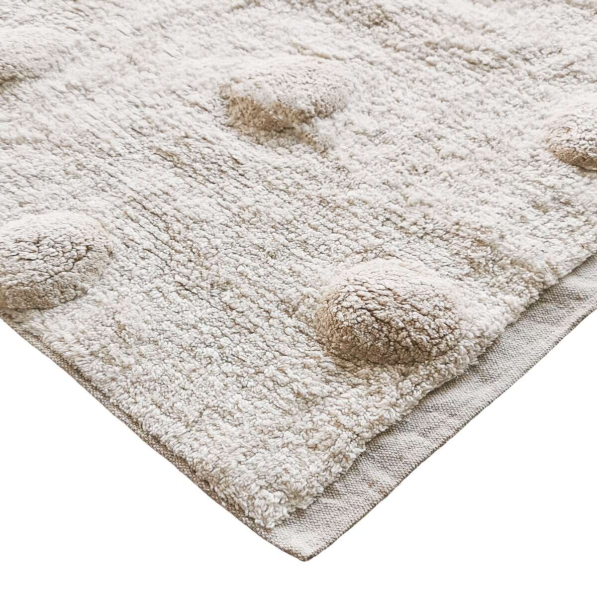 Confectionné à la main en 100 % coton, ce tapis artisanal apportera une touche de fantaisie à la chambre des petits avec ses gros pois en relief et sa teinte naturelle facile à intégrer dans toutes les ambiances.