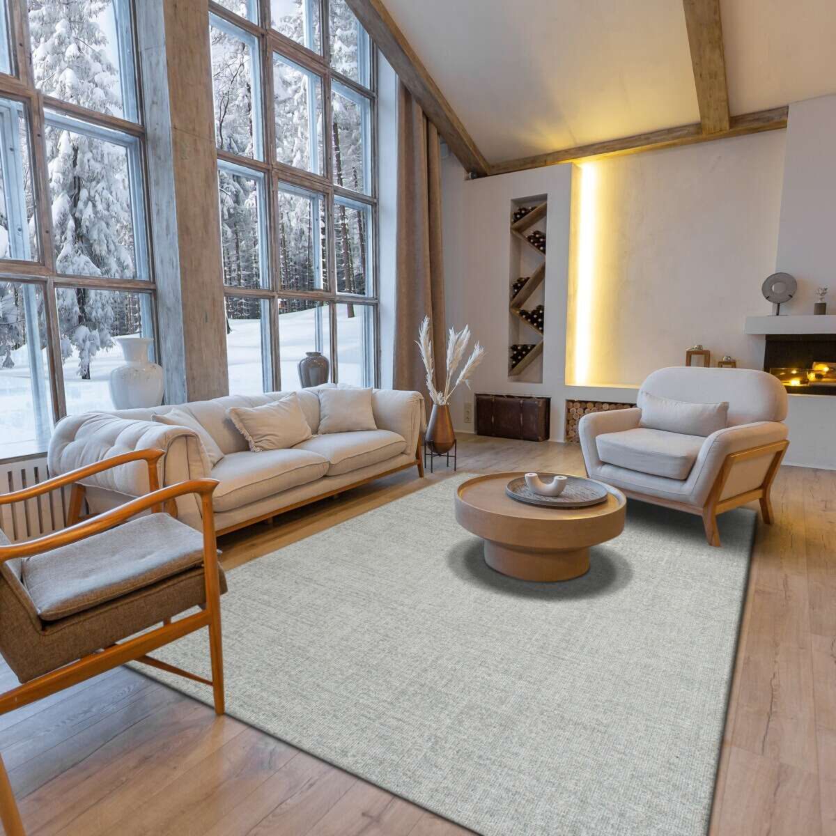 Ce tapis LAINEE TRAMES en laine, fabriqué en Europe, uni allie confort et simplicité, offrant une sensation de douceur incomparable sous les pieds.