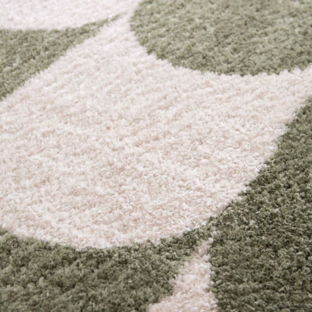 | description du produit_ES | Aporta suavidad y carácter a tu interior con esta alfombra de diseño gráfico inspirada en la estética mid-century. Sus formas abstractas y orgánicas en verde natural contrastan armoniosamente con un fondo beige luminoso, creando una composición moderna y equilibrada que se integra fácilmente en un salón, un dormitorio o una oficina. Gracias a su pelo grueso de 22 mm, esta alfombra ofrece una sensación excepcionalmente suave y mullida bajo los pies. Su tacto soft & furry proporciona un confort agradable en el día a día y transforma instantáneamente tu estancia en un espacio cálido y acogedor. Procedente de la colección MAYA, esta alfombra combina estilo contemporáneo y compromiso responsable. Está fabricada con poliéster reciclado, un material duradero que permite reducir el impacto ambiental manteniendo una excelente calidad y gran resistencia. Certificada OEKO-TEX®, esta alfombra ha sido sometida a estrictos controles para garantizar un textil adecuado para el hogar y el uso diario. Diseñada para durar, esta alfombra cuenta con una fabricación resistente: no pierde fibras, es fácil de mantener y es compatible con calefacción por suelo radiante. Una elección ideal para disfrutar de una alfombra tan estética como práctica. Ventajas del producto: