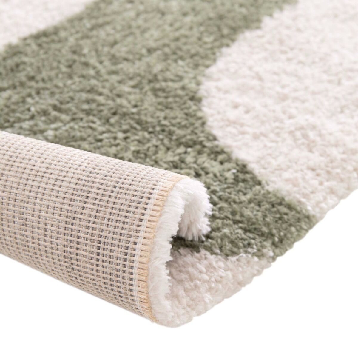 | description du produit_DE | Bringen Sie Weichheit und Charakter in Ihr Zuhause mit diesem Teppich im grafischen Design, inspiriert von der Mid-Century-Ästhetik. Seine abstrakten und organischen Formen in natürlichem Grün kontrastieren harmonisch mit einem hellen beigen Hintergrund und schaffen eine moderne und ausgewogene Komposition, die sich leicht in Wohnzimmer, Schlafzimmer oder Büro integrieren lässt. Dank seines 22 mm hohen Flors bietet dieser Teppich ein besonders weiches und angenehmes Laufgefühl. Seine soft & furry-Haptik sorgt für täglichen Komfort und verwandelt Ihren Raum sofort in eine warme und einladende Umgebung. Dieser Teppich aus der Kollektion MAYA vereint zeitgenössischen Stil und verantwortungsbewusstes Design. Er wird aus recyceltem Polyester hergestellt, einem langlebigen Material, das den ökologischen Fußabdruck reduziert und gleichzeitig eine hervorragende Qualität und Widerstandsfähigkeit bietet. Zertifiziert nach OEKO-TEX®, wurde dieser Teppich nach strengen Kriterien getestet, um ein Textil zu gewährleisten, das für den Wohnbereich und den täglichen Gebrauch geeignet ist. Für eine lange Lebensdauer konzipiert, überzeugt dieser Teppich durch eine robuste Verarbeitung: Er fusselt nicht, ist pflegeleicht und für Fußbodenheizungen geeignet. Die ideale Wahl für einen Teppich, der sowohl stilvoll als auch praktisch ist. Produktvorteile: