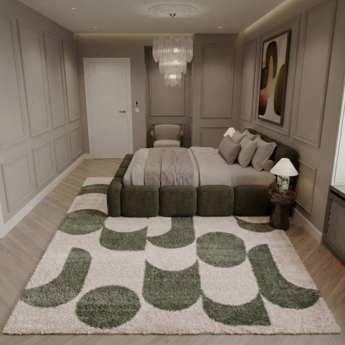 Apportez douceur et caractère à votre intérieur avec ce tapis au design graphique inspiré de l’esthétique mid-century. Ses formes abstraites et organiques dans un vert naturel contrastent harmonieusement avec un fond beige lumineux, créant une composition moderne et équilibrée qui s’intègre facilement dans un salon, une chambre ou un bureau.