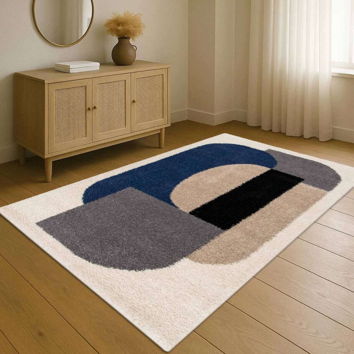 Entre formes courbes, contrastes subtils et couleurs élégantes, ce tapis devient naturellement la pièce maîtresse du salon, de la chambre ou d’un espace lecture. Il insuffle une énergie graphique ultra tendance tout en conservant une allure cosy et raffinée.