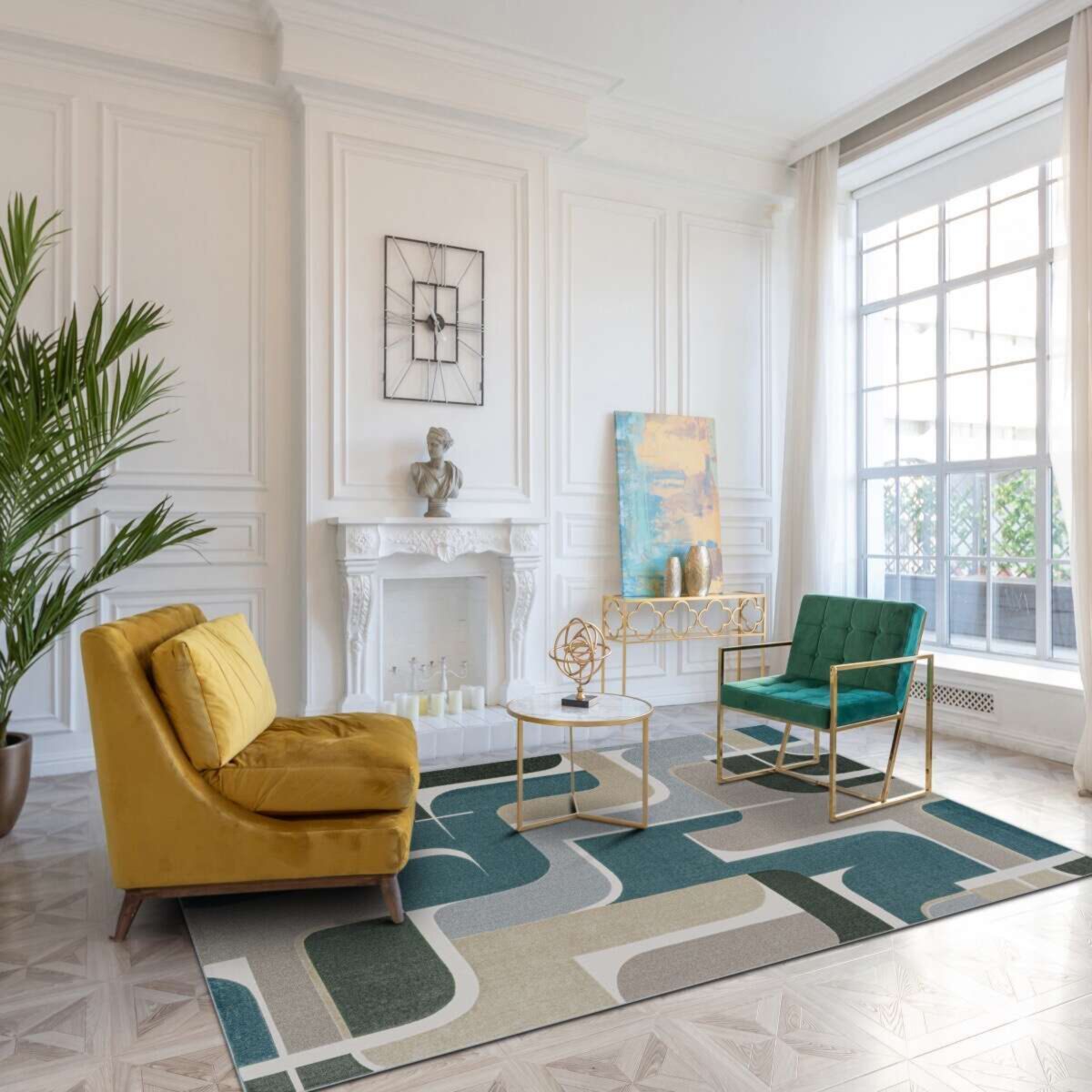 Le tapis moderne LUCANO, fabriqué en polyester recyclé et certifié OEKO-TEX, allie un style contemporain à un engagement écologique.