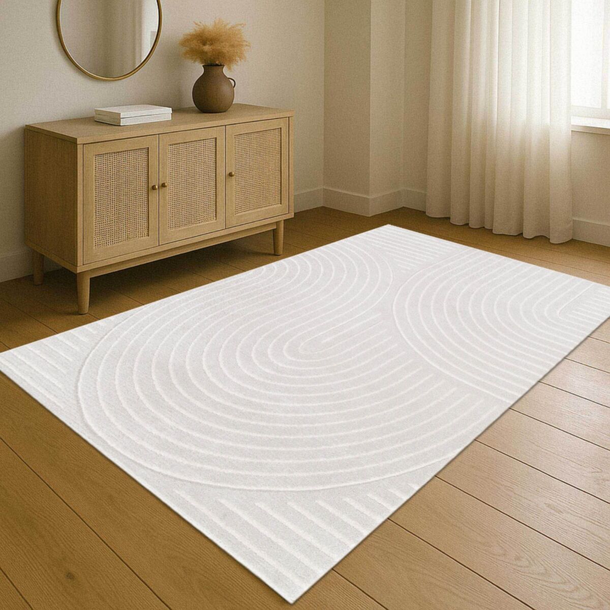Son coloris beige naturel, lumineux et facile à associer, crée une atmosphère apaisante. Les lignes organiques en relief dessinent une composition moderne et élégante, parfaite pour sublimer un salon, une chambre ou même un espace de travail. Un tapis qui structure l’espace tout en douceur.