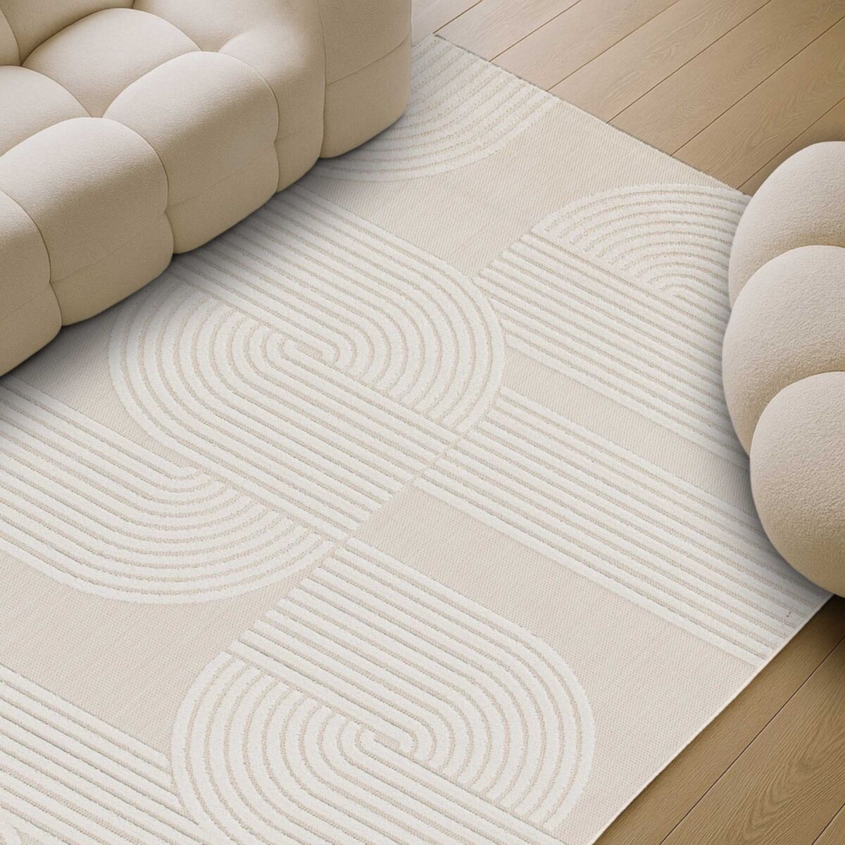 Tapis à relief géométrique moderne crème 2000x290