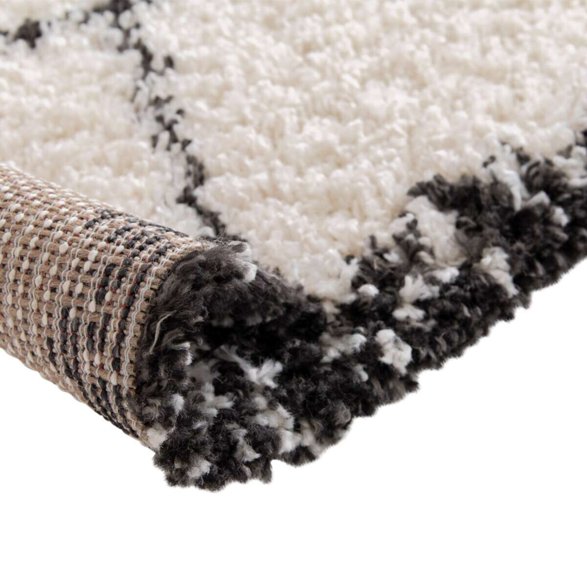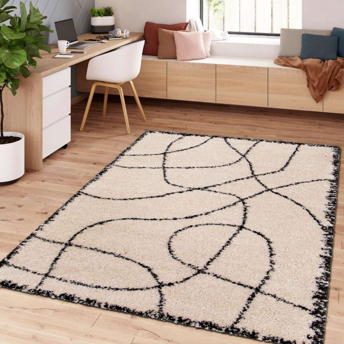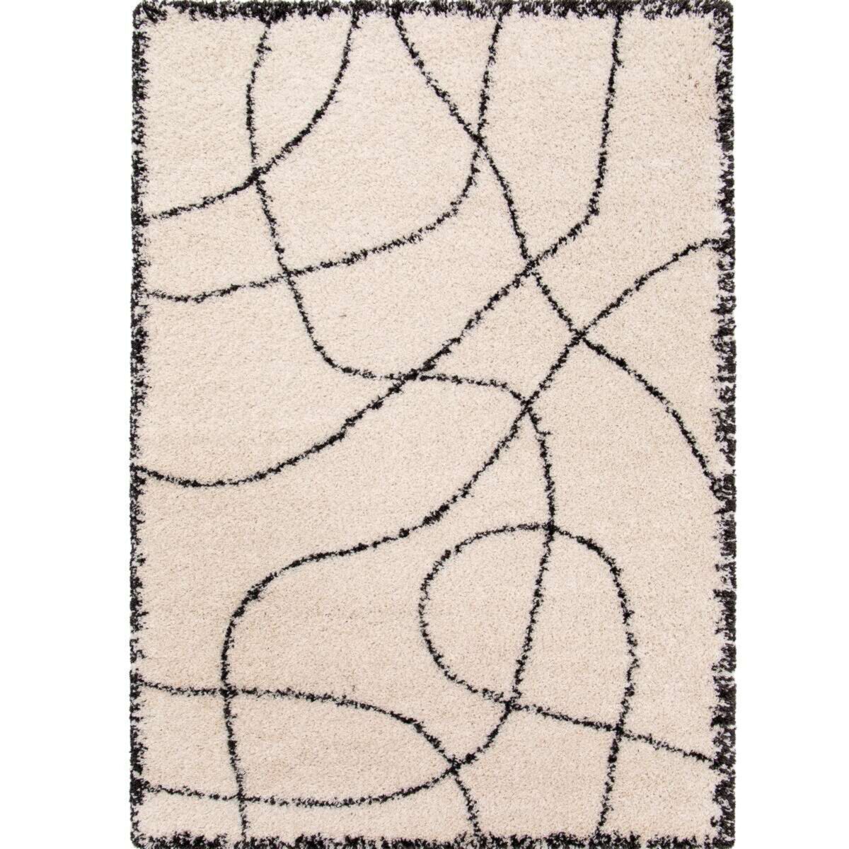 Tapis shaggy à poils long graphiques crème et noir 200x290
