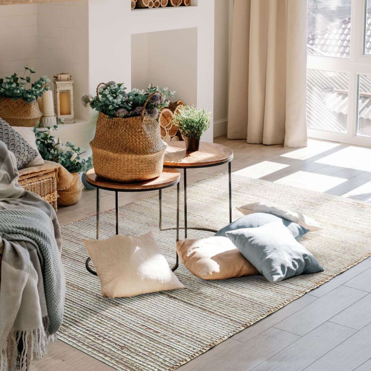 Tapis tissé et tressé en jute et coton naturel 120x170