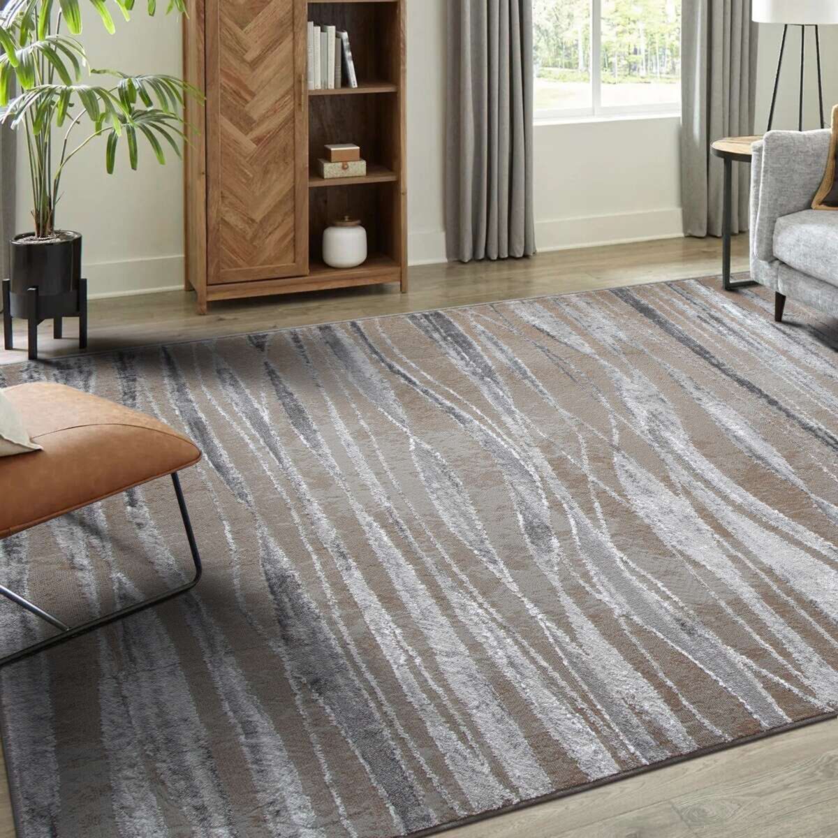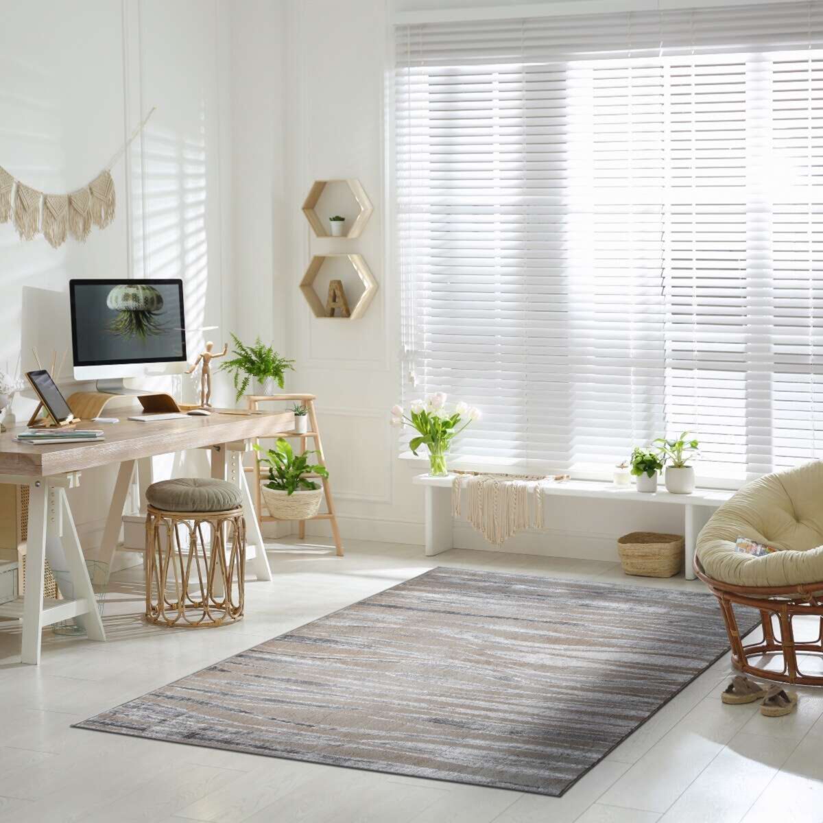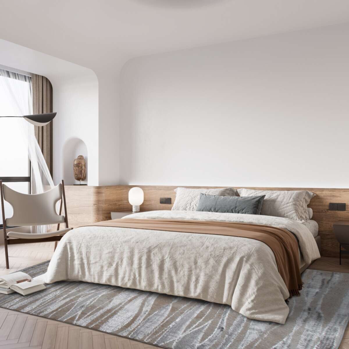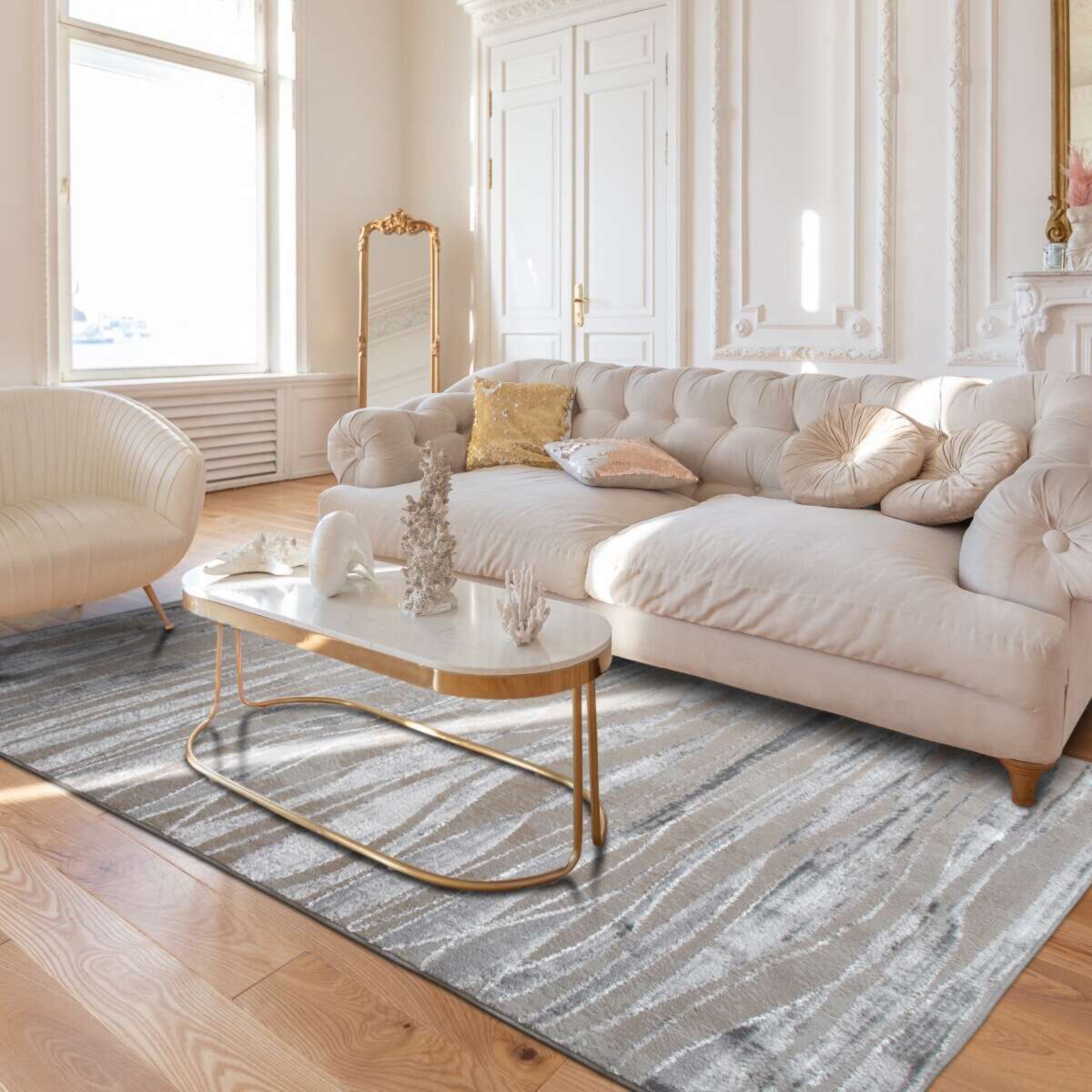 MEDIANE VAGUES est un superbe tapis graphique dont le motif de petites vagues apporte élégance et caractère. Il ira à merveille dans un intérieur des plus chics et élégants.