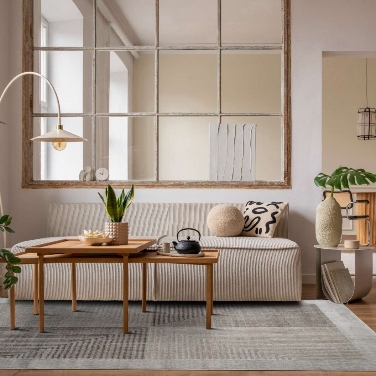 Tapis moderne motif géométrique gris beige 120x170