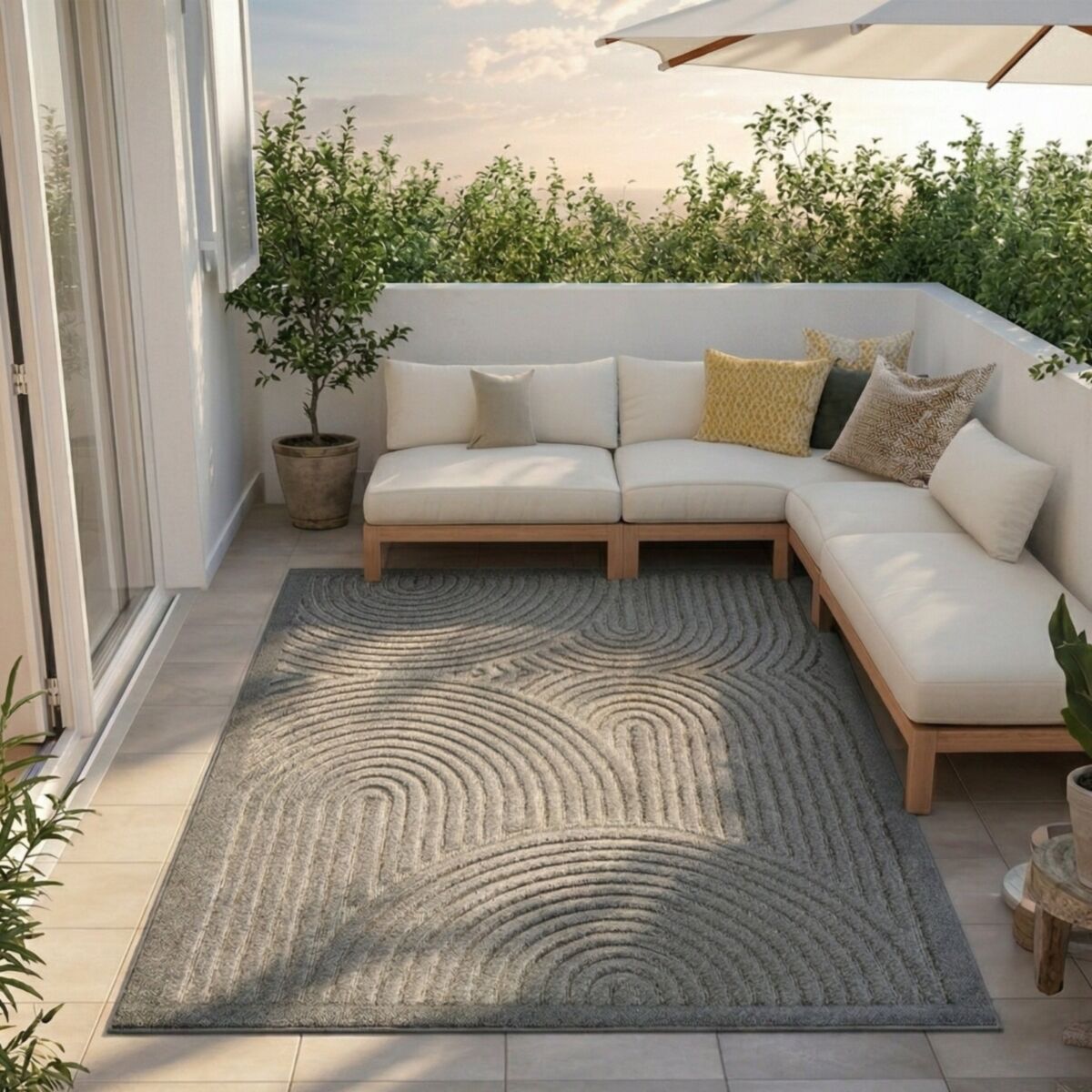 Avec son motif d’arcs en relief et son tissage texturé, ce tapis apporte une touche contemporaine tout en restant sobre et élégant. La teinte gris clair s’accorde facilement à tous les styles d’intérieur, du plus minimaliste au plus cosy.