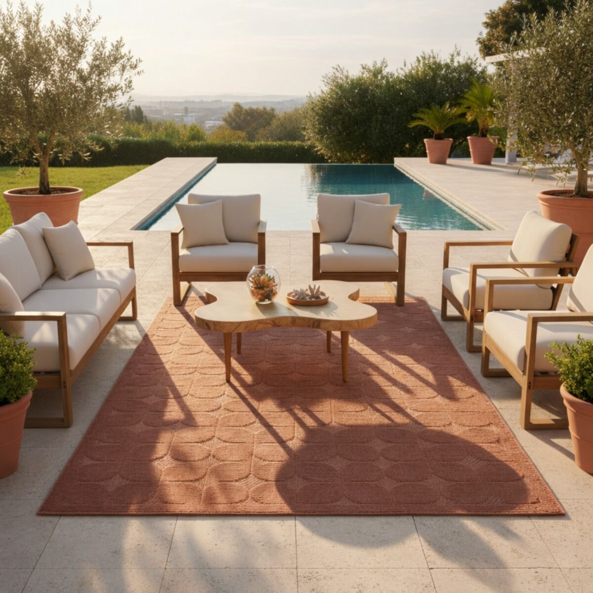 Pensé pour un usage aussi bien en intérieur qu’en extérieur, il résiste à l’humidité, aux UV et aux passages répétés, tout en restant doux au toucher.