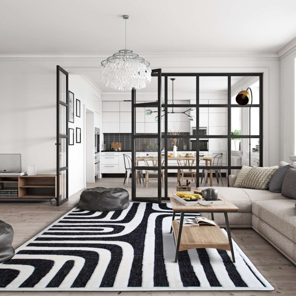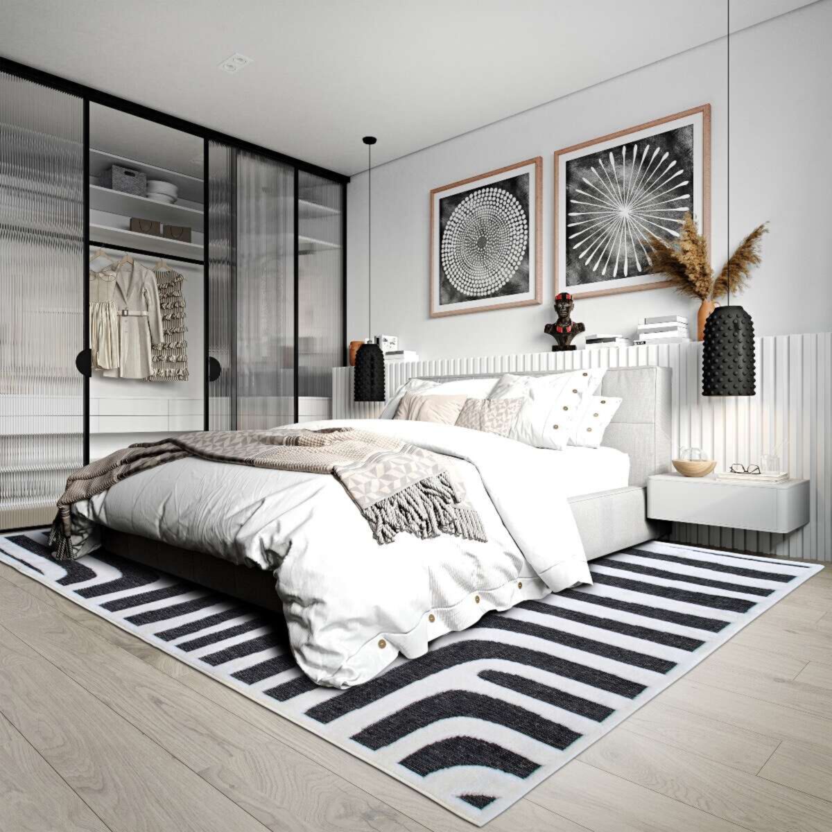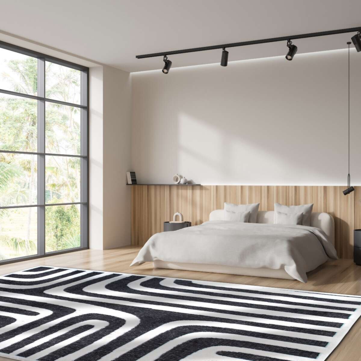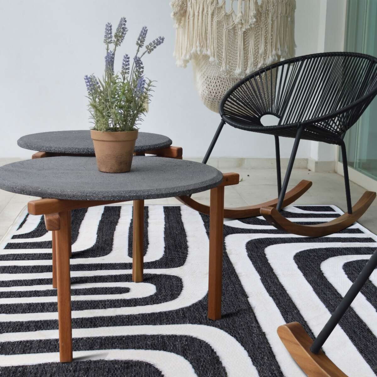 Tapis intérieur et extérieur motif optique en relief anthracite 195x275