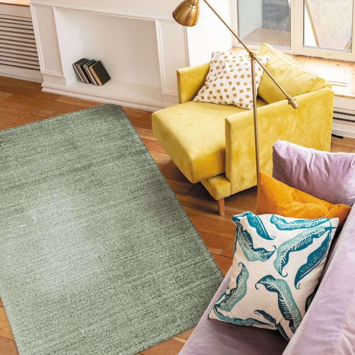 Tapis en laine et coton vert clair 120x170